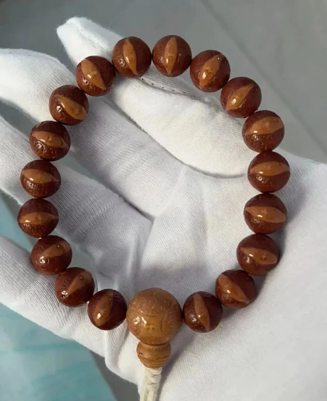 总之,橄榄核是一种非常娇气的文玩手串,盘它,一定要加十二分的小心,才能不花脸 。星月菩提,可以说是盘玩难度很低的一种入门级文玩手串,但是,要说星月菩提,可以说是最容易花脸的一种文玩手串了。![]()