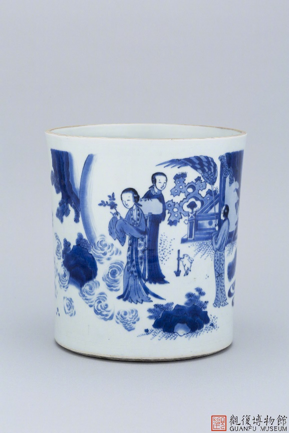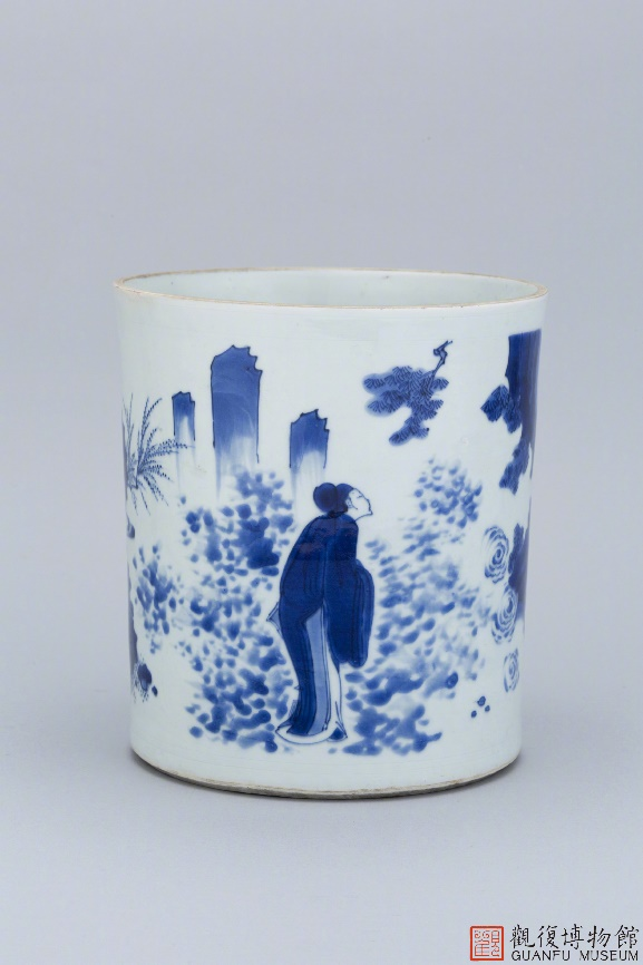 明崇祯青花蟾宫折桂纹笔筒
