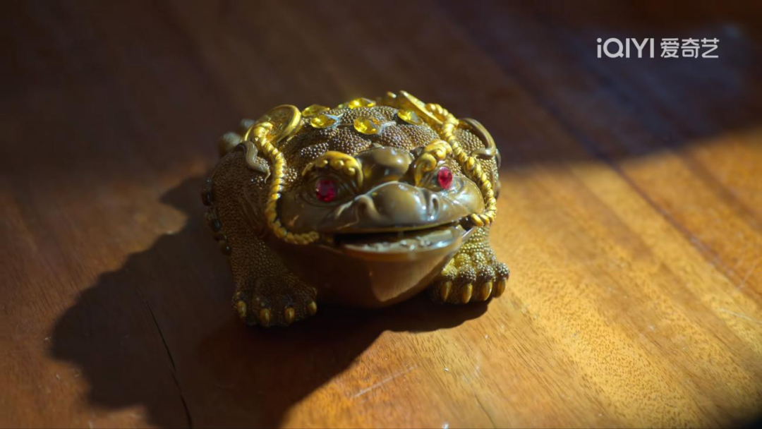 这只金蟾应该是陶土高温烧制的,口衔“铜钱”,身嵌“彩宝”,首次出场是在第十三集,高启强的干爹泰叔拿金蟾比作高启强,明着说嫌它不招财,实则是讽刺高启强没能力。我相信不会只有我去抖Y、某宝、拼DD搜同款吧,反正搜完的结论是剧组经费有限,毕竟安欣的全套行头都快10万了。虽然导演在茶宠金蟾上选择妥协,但他确实展现出当今高端局中常见的宠儿,就是这只三条腿的蛤蟆,试问金蟾到底出身如何?它是从什么时候起,凭着三条腿一路狂飙,走上神坛,并成为财富象征的呢?
