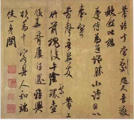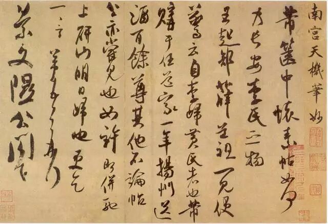 释文:芾箧中怀素帖如何。乃长安李氏之物。王起部、薛道祖一见。便惊云。自李归黄氏者也。芾购于任道家。一年扬州送酒百馀尊。其他不论。帖公亦尝见也。如许。即并驰上。研山明日归也。更乞一言。芾顿首再拜。景文隰公阁下。