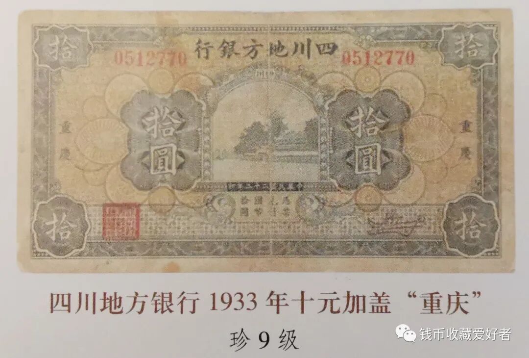 四川地方银行于1933年1月12日开业,发行一元、五元、十元三种兑换券。3月成都分行成立,又发行一元、五元面额的成都地名券。后又发行有五角、二角辅币券。![]()