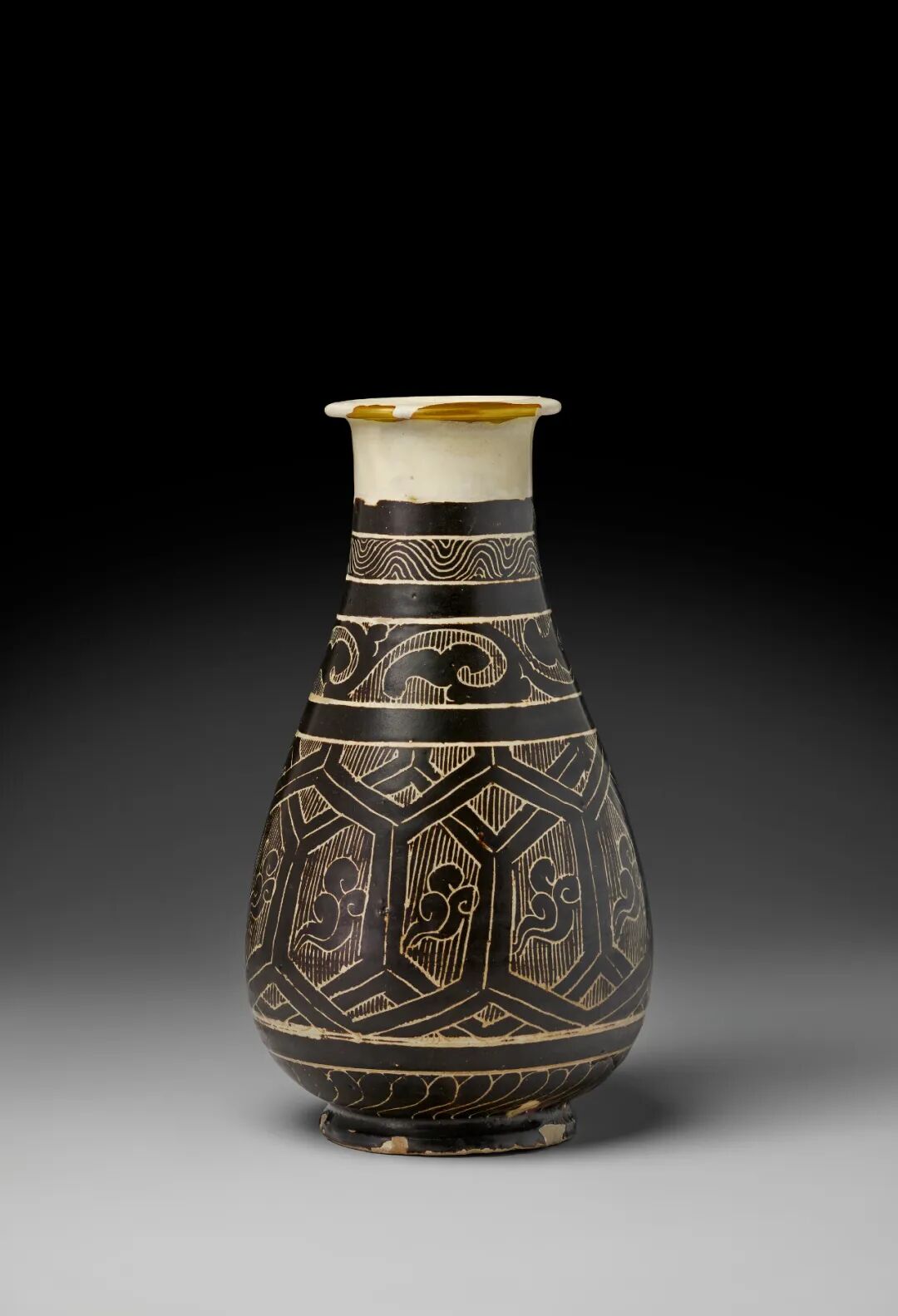 北宋/金 十二/十三世纪 磁州窑白地黑釉划花几何纹瓶拍品估价:150,000 - 200,000 美元1.伦敦苏富比, 1999年11月17日, 拍品编号7311.George de Menasce (1891-1967) 珍藏, 伦敦, 编号2585.《日本珍藏宋代瓷器》, 伦敦苏富比, 2011年5月11日, 拍品编号96.Roger Weston (1943年生) 珍藏, 芝加哥1.东方陶瓷学会, 《Sung Dynasty Wares: Chun and Brown Glazes, 伦敦, 1952年, 编号1262.《Mostra d'Arte Cinese (Exhibition of Chinese Art)》,威尼斯, 1954年, 编号5533.《The George de Menasce Collection, part II》, Spink & Son, 伦敦, 1972年, 编号2474.小山富士夫:《陶瓷大系-卷38-天目》, 东京, 1974年, 图版 26-275.茧山龙泉堂:《龙泉集芳》, 卷1, 东京, 1976年, 页209, 图版6261.伦敦, 东方陶瓷学会, “Sung Dynasty Wares: Chun and Brown Glazes”, 1952年5月1-31日2.威尼斯, “Mostra d'Arte Cinese (Exhibition of Chinese Art)”, 1954年3.伦敦, George de Menasce 珍藏(第二部分), Spink & Son, 1972年5月10-26日拍品估价:200,000 - 300,000 美元1.Francis Stewart Kershaw (1869-1930) 珍藏, 波士顿2.纽约苏富比Parke Bernet, 1976年3月20日, 拍品编号833.Robert Ferris 珍藏, 佛蒙特州温莎, 1976-1997年出版:蓝理捷, 《 Brush & Clay: Paintings by Robert Ferris and Chinese Ceramics of the Song Dynasty from the Artist’s Collection 》, 纽约, 1997年, 编号212.借展: 明尼阿波利斯, 明尼阿波利斯艺术博物馆3.纽约, 蓝理捷, “Brush & Clay: Paintings by Robert Ferris and Chinese Ceramics of the Song Dynasty from the Artist’s Collection”, 1997年9月19日-10月18日, 编号212.Breitbart珍藏; 纽约苏富比, 2014年9月16日, 拍品编号105拍品估价:150,000 - 200,000 美元![]()