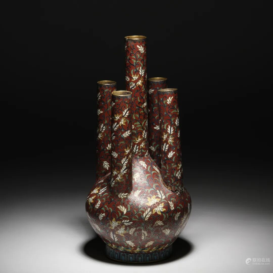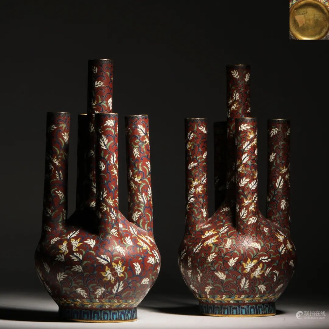清乾隆 掐丝珐琅五管瓶一对