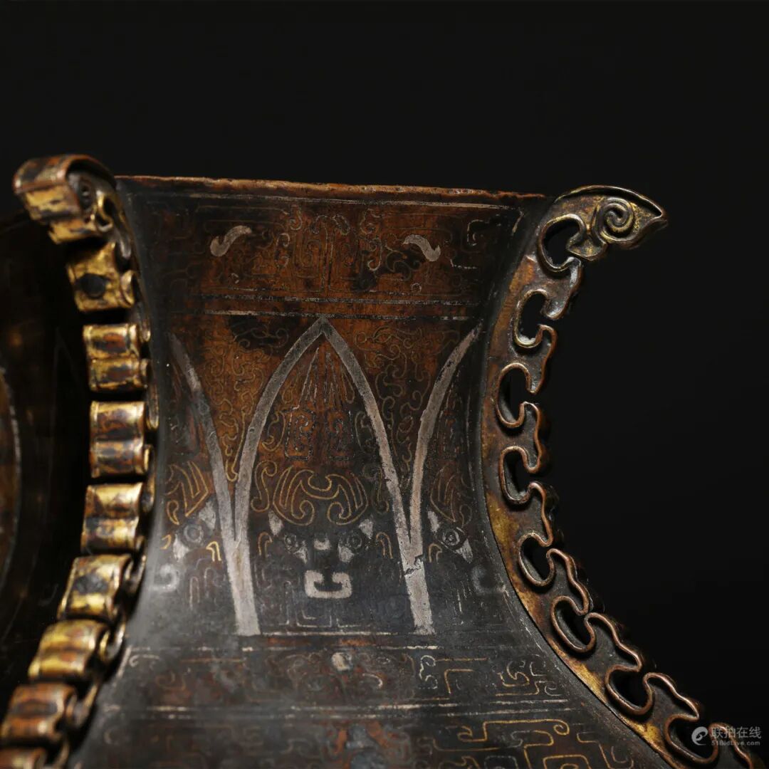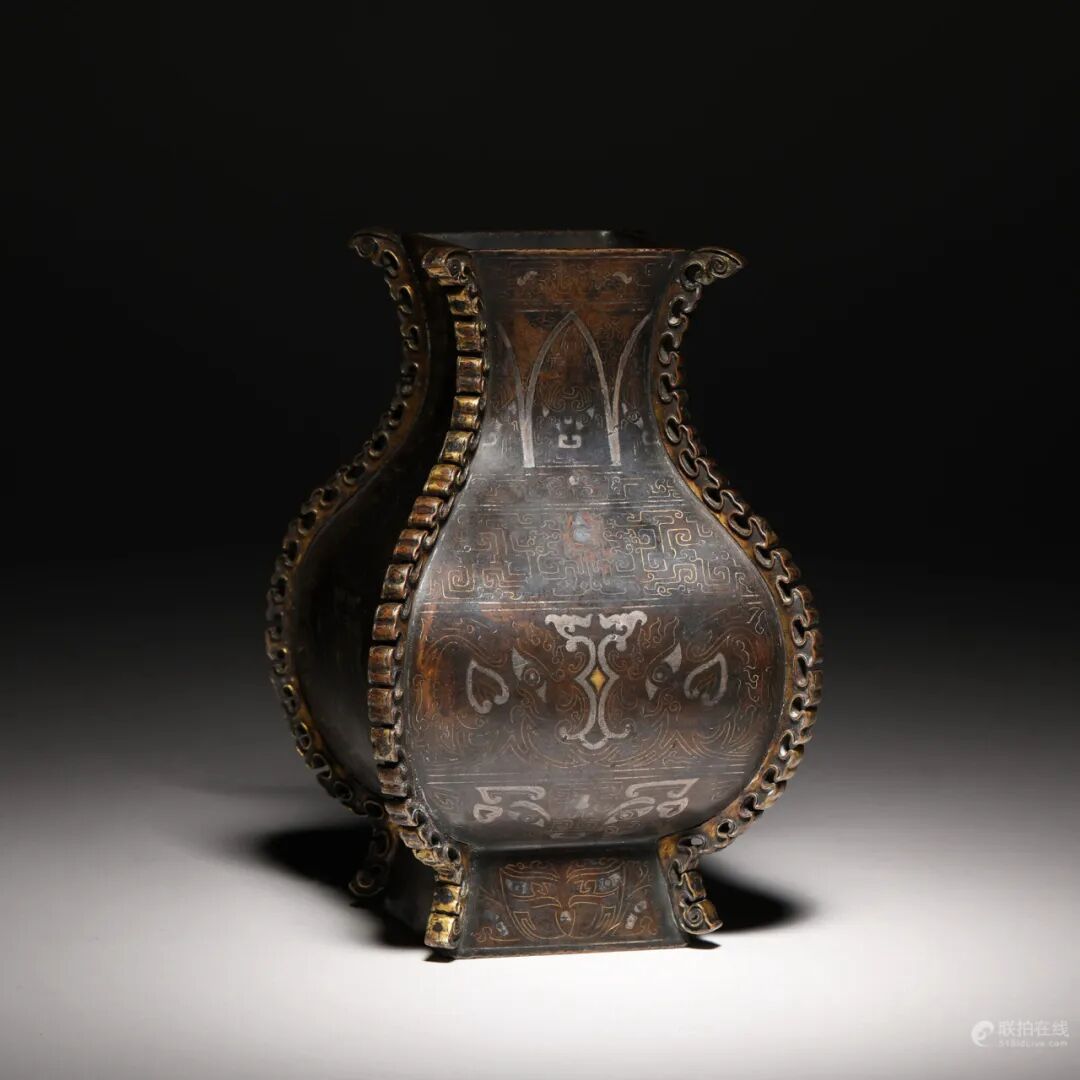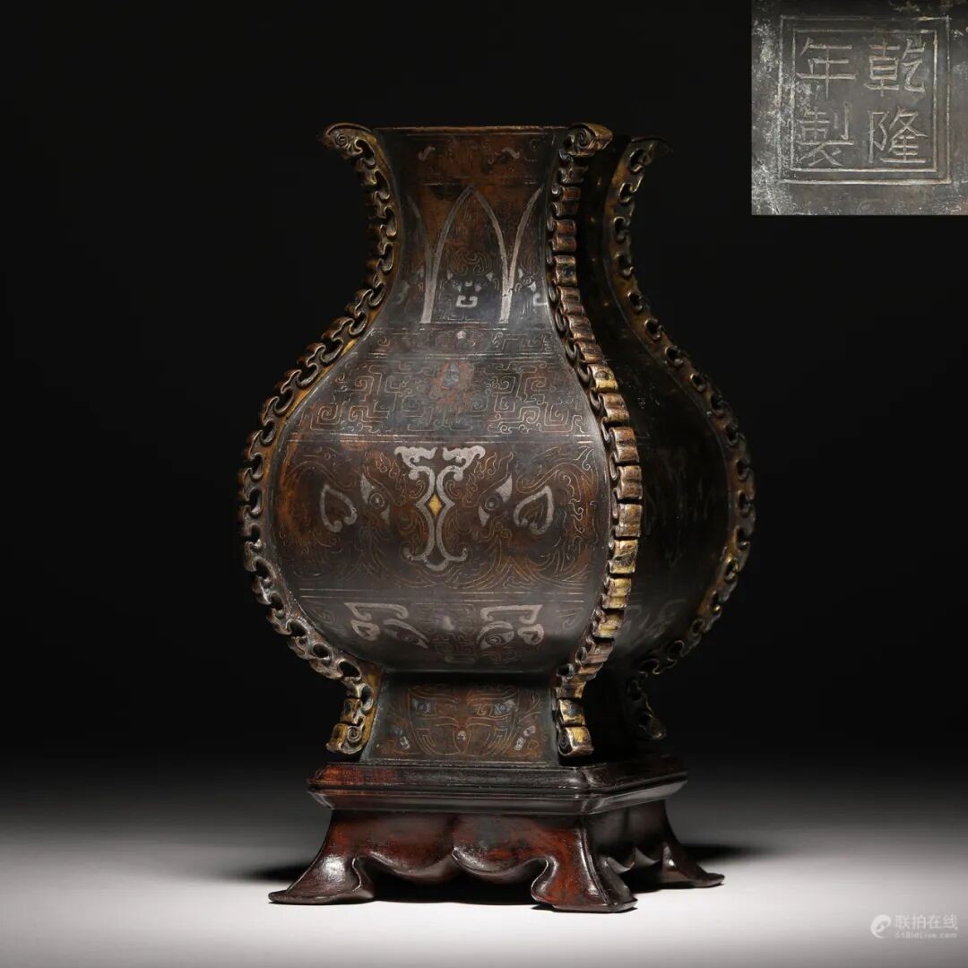 清乾隆 铜错金银饕餮出戟方尊