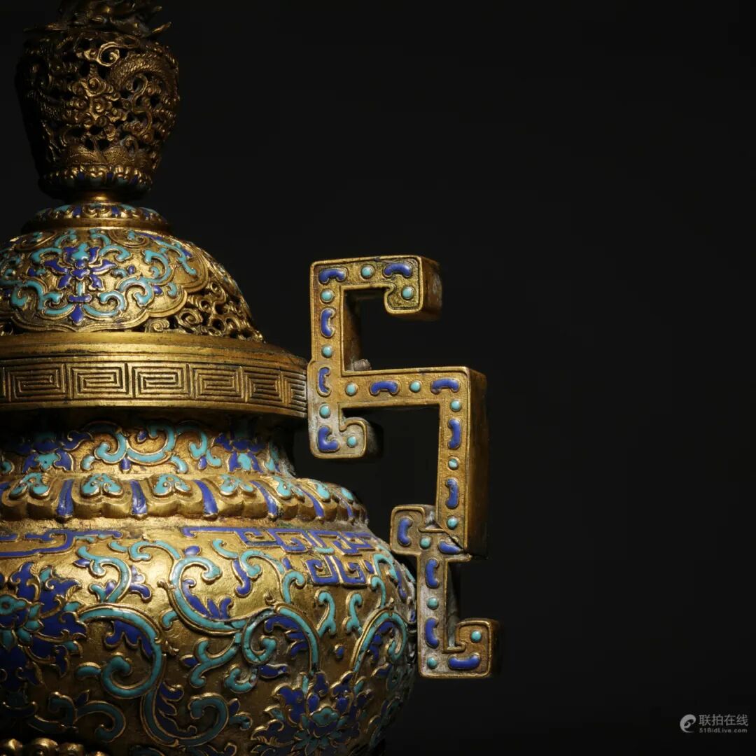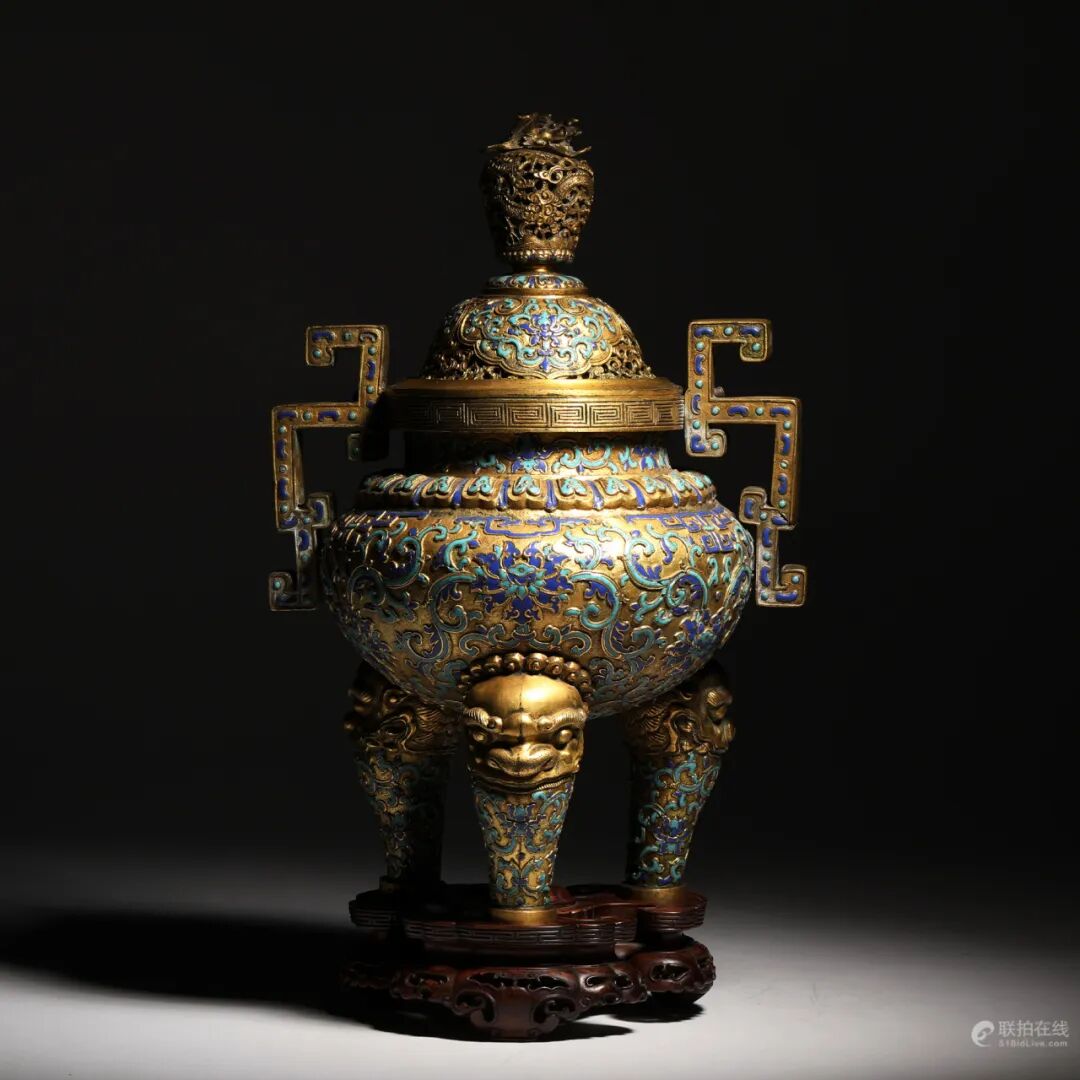 清乾隆 掐丝珐琅龙钮三兽足大香炉