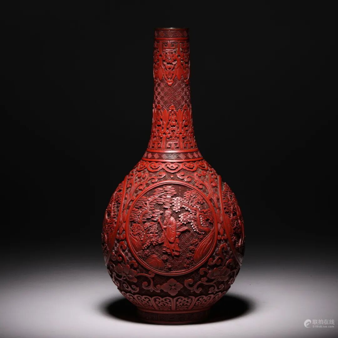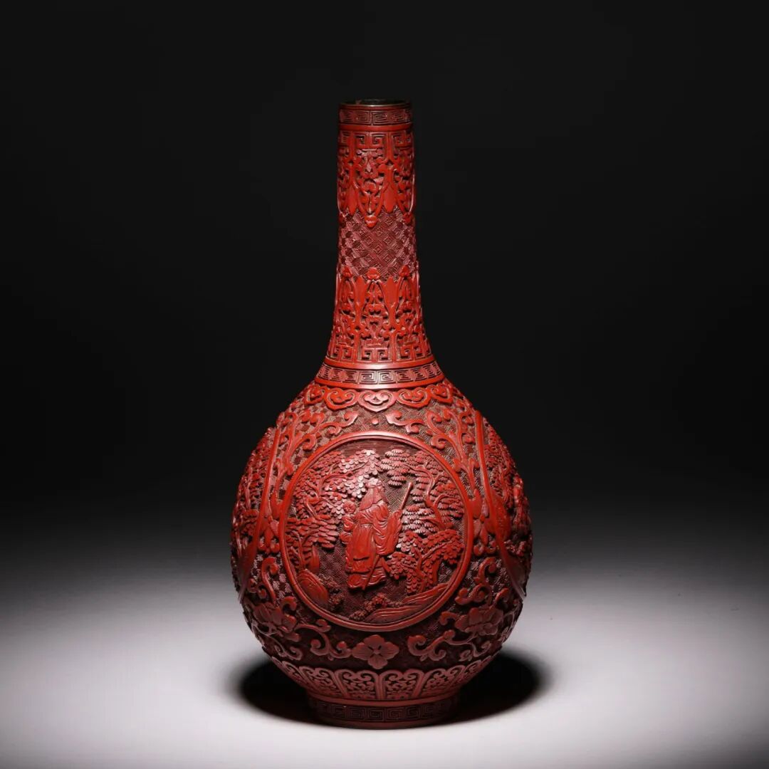 清乾隆 剔红高仕图胆瓶