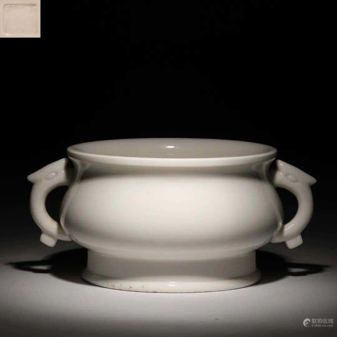 清 白玉兽面纹凤钮出戟 方盖炉
