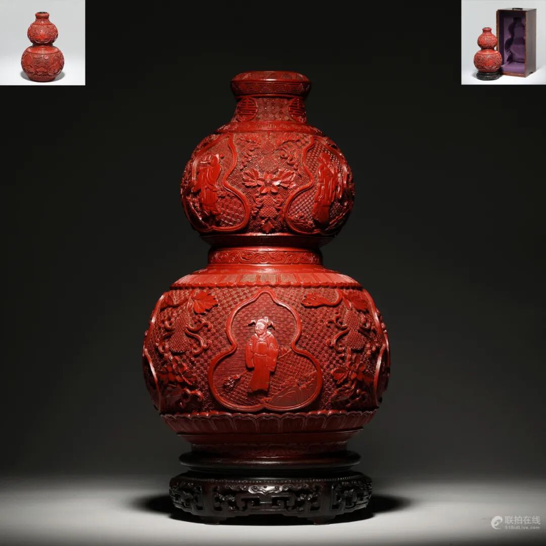 清中期 剔红八仙人物葫芦瓶