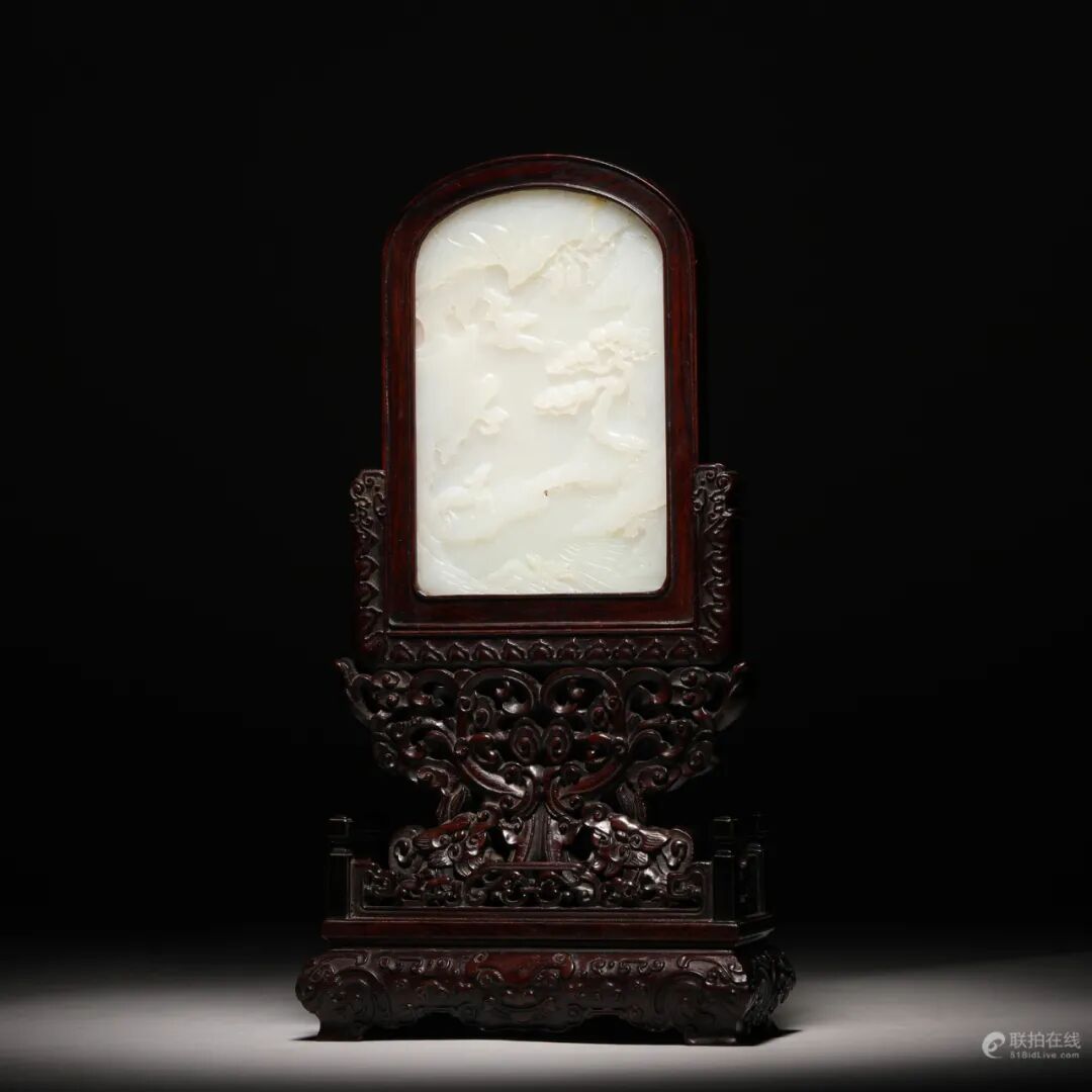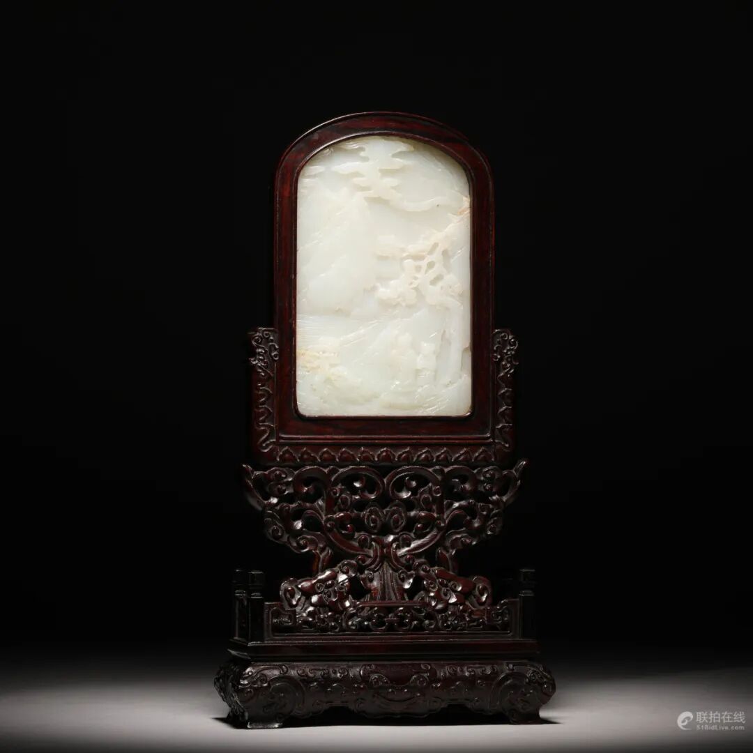 清和田玉籽料 紫檀木白玉插屏 溪山高隐图
