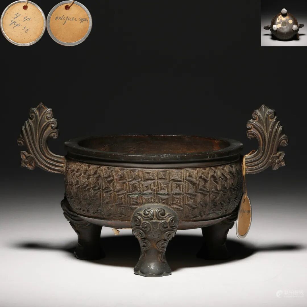明 宣字款回纹双耳三足炉
