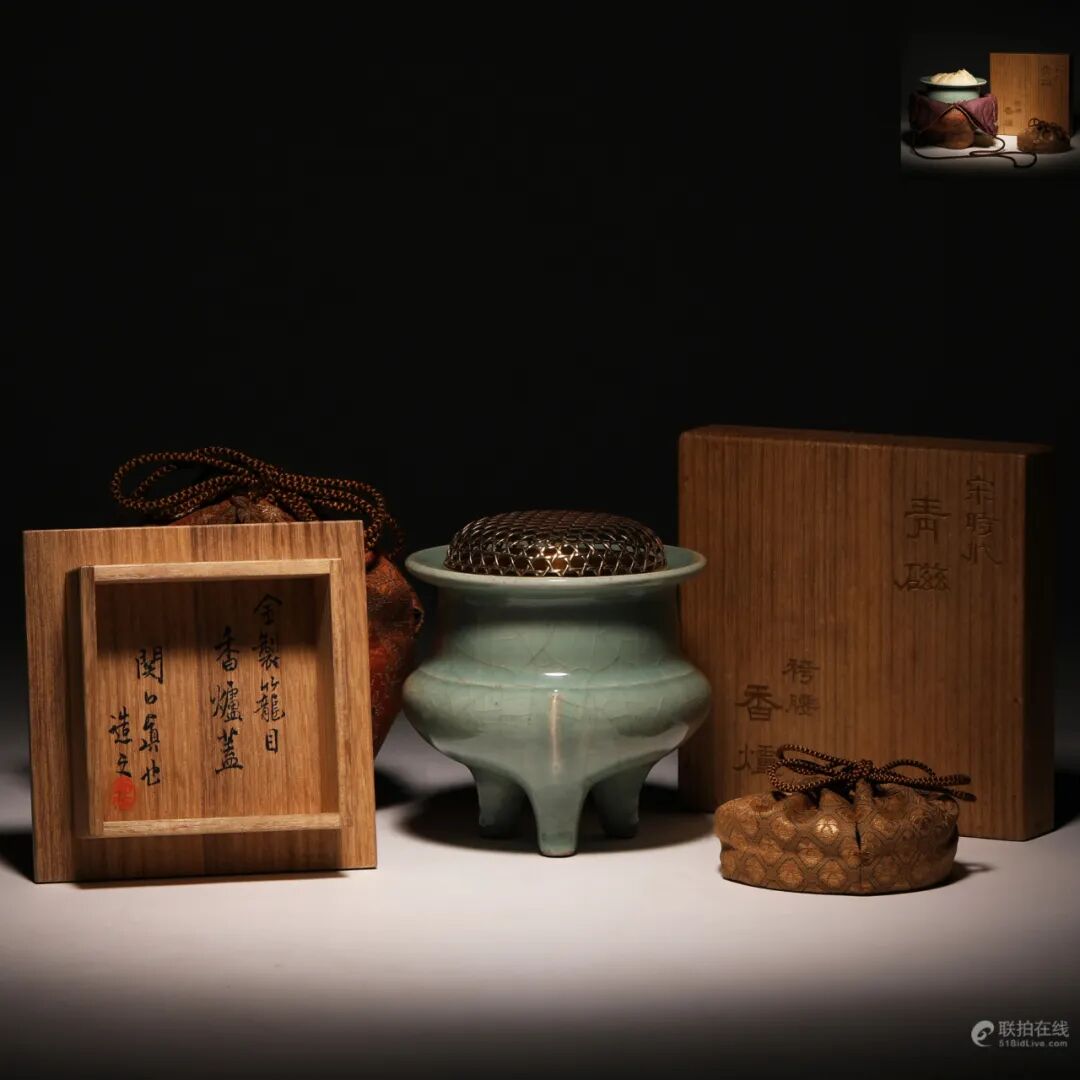 青瓷袴腰香炉付关口真也造
