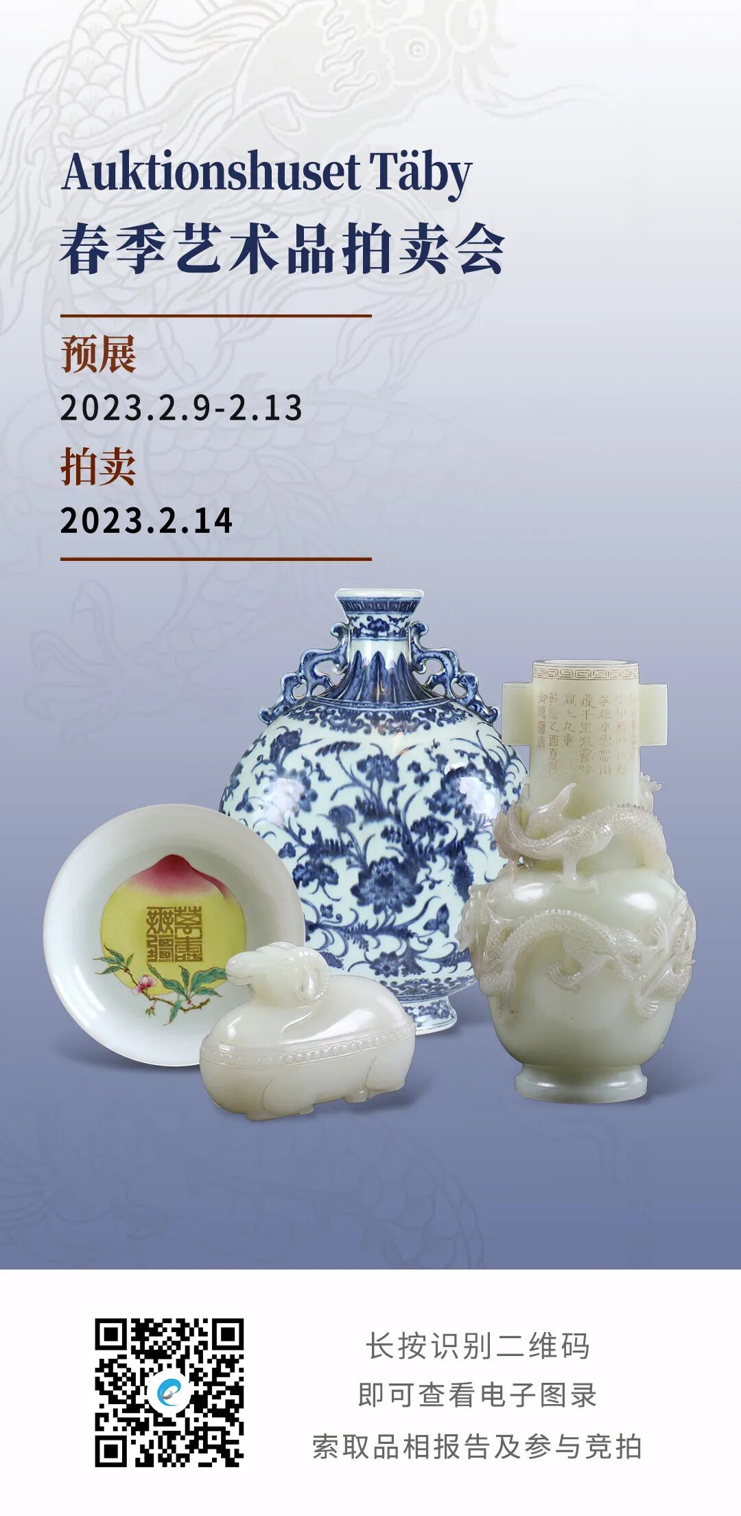 Auktionshuset Tby 是瑞典的知名拍卖行,在斯德哥尔摩市政中心附近拥有一个现代化的展厅,专用于陈列亚洲艺术品和设计艺术品。北京时间2月14日晚上7点,Tby 将举行『春季艺术品拍卖』,推出190余件以精美瓷器为主的中国艺术品,联拍在线全程直播,并提供实时同步竞拍技术和服务支持。