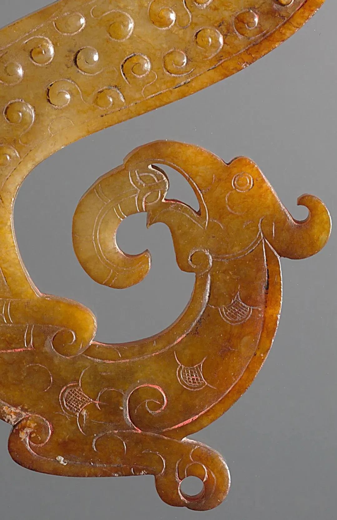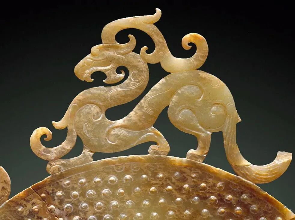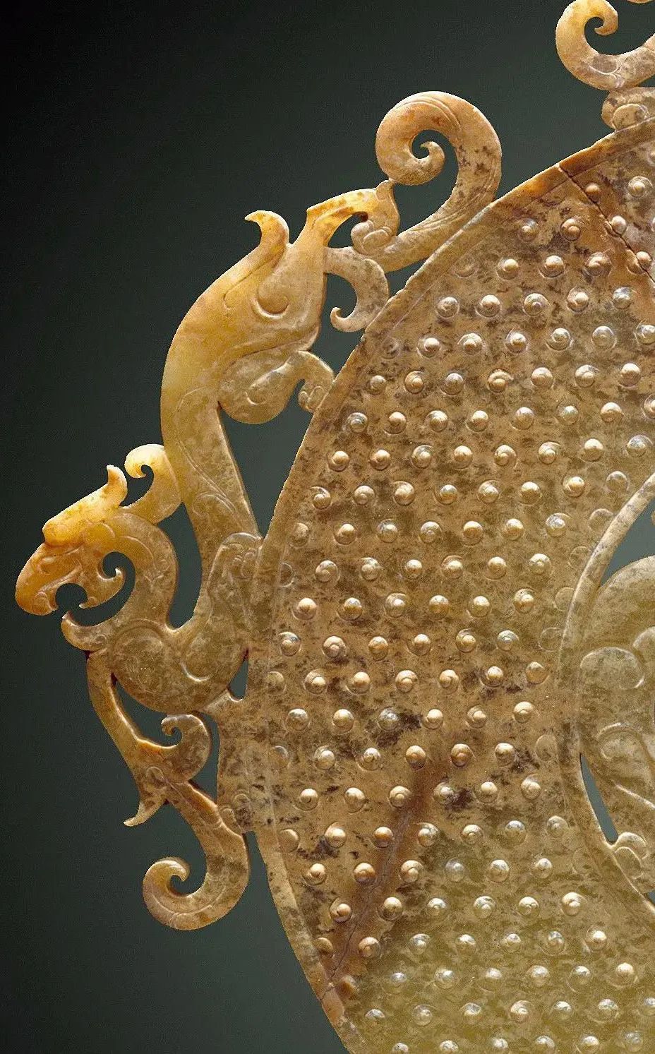 透雕龙虎饰谷粒纹玉璧