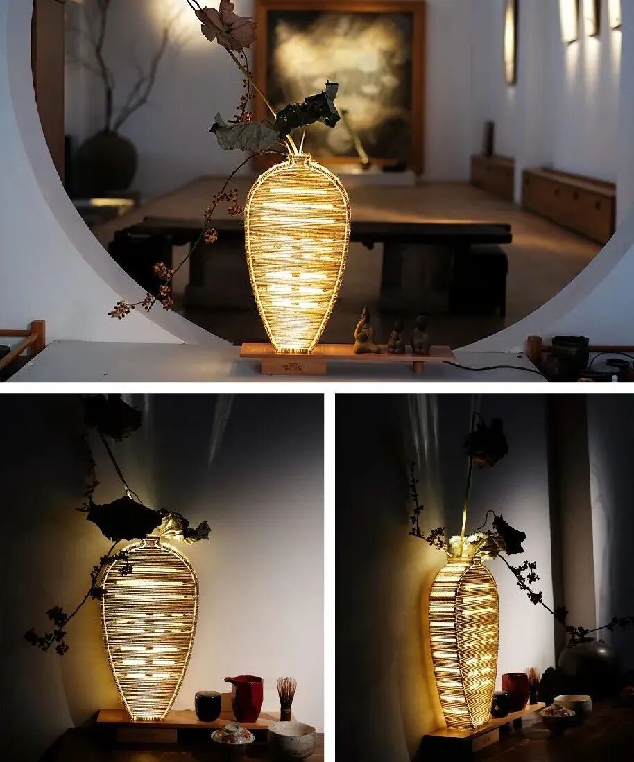 “东风夜放花千树”“望千门如昼”“灯火钱塘三五夜,明月如霜,照见人如画”……对于生活在900多年前的宋人来说,灯火通明的元宵夜不仅是辉煌灿烂的,也是浪漫而富有诗意的。延续千百年的赏月、观灯、插花的节庆习俗,到如今也成为点亮寻常生活的一种方式。下文中的这些器物,乍一看是花器、摆台,造型古朴,不甚抢眼。开灯时,暖光亮起,满室生辉。再配以干花三两枝——彩玫、满天星、鲁丹鸟……艺术气息和禅意氛围立刻就营造出来了。它们融复古与现代风格于一体,“颜值”与“内涵”并存。当灯影与月色辉映之时,也为生活空间平添了几分宋韵风雅。那么,你想拥有吗?