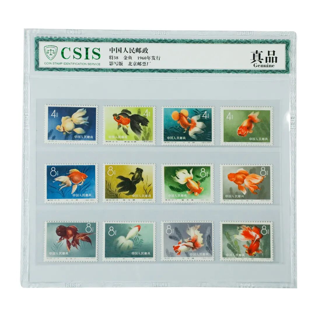 全套12枚,按图序依次介绍了翻鳃绒球,黑背龙睛,水泡眼,红虎头,珍珠鱼,蓝龙睛,望天鱼,红帽子,紫帽子,红头,花龙睛,红龙睛这12种中国金鱼的名贵品种。《金鱼》是中国第一套彩色影写版邮票。