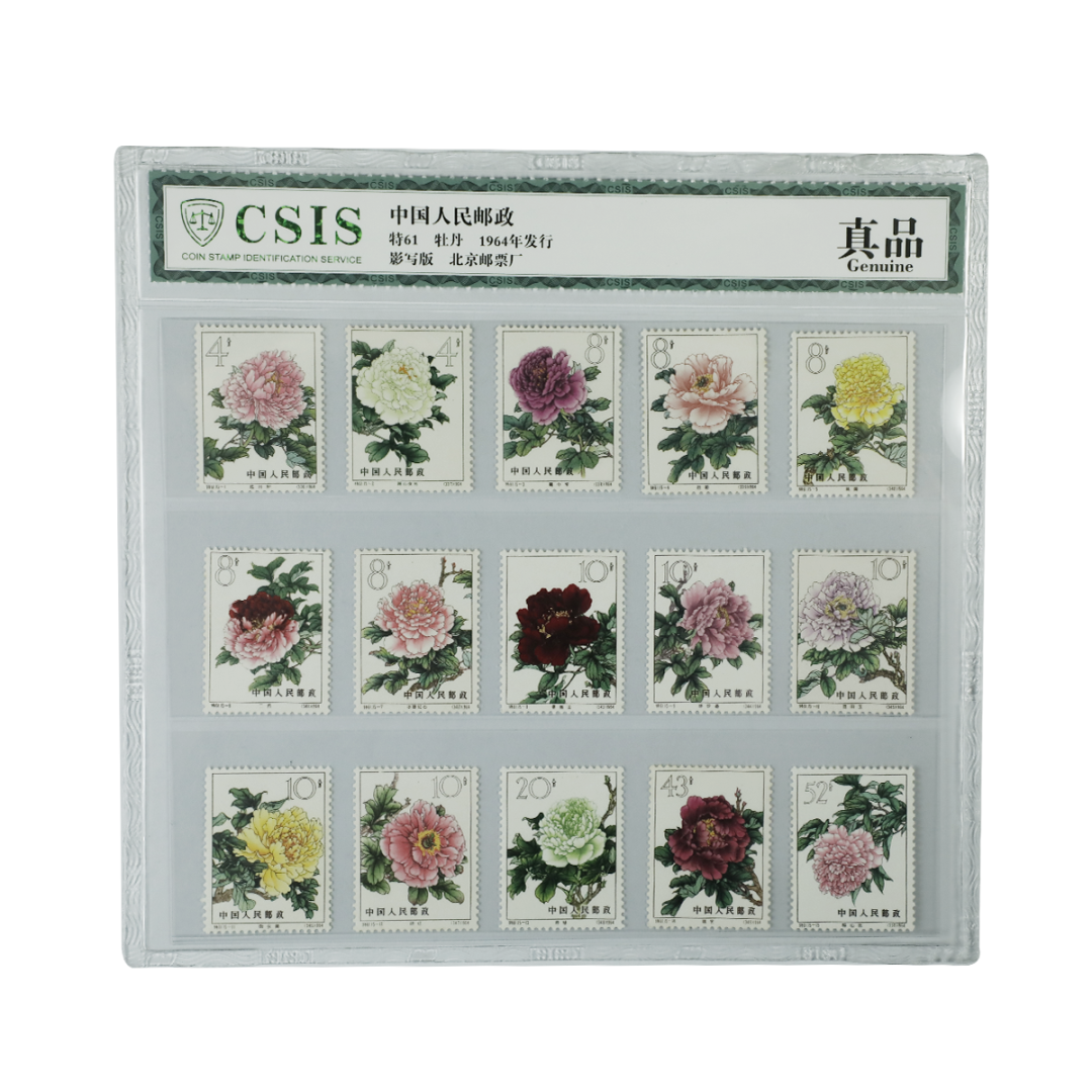 《牡丹》邮票发行于1964年,全套15枚,完整的全套发行量仅100万套,是当时中华人民共和国邮电部为展示中国丰富的植物资源而发行的。