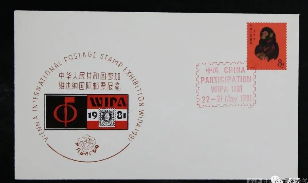 贴有T46“庚申猴”邮票的总公司维也纳国际邮展封成交价为10989元。目前一枚全品的猴票,市场价在1万元以上。