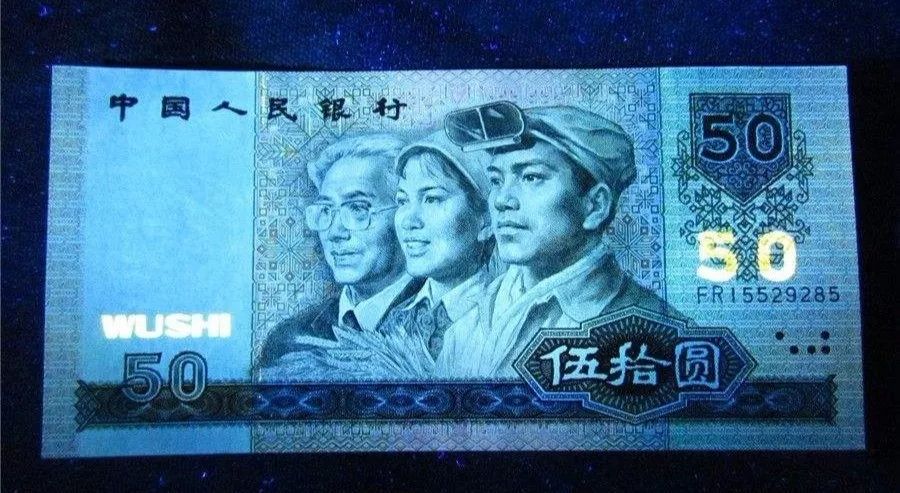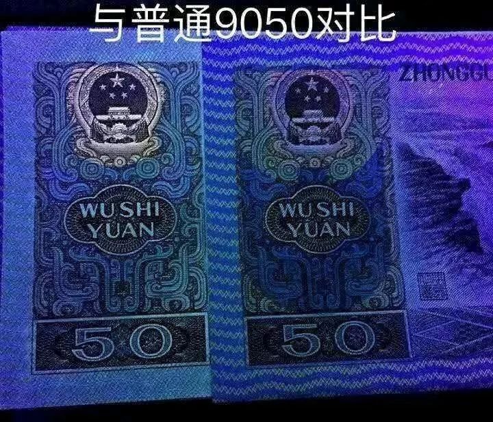 9050即90年的50元纸币。荧光下的金色国徽,同样也是很好看的一张。就是国徽带了荧光,但这名字起得很霸气!