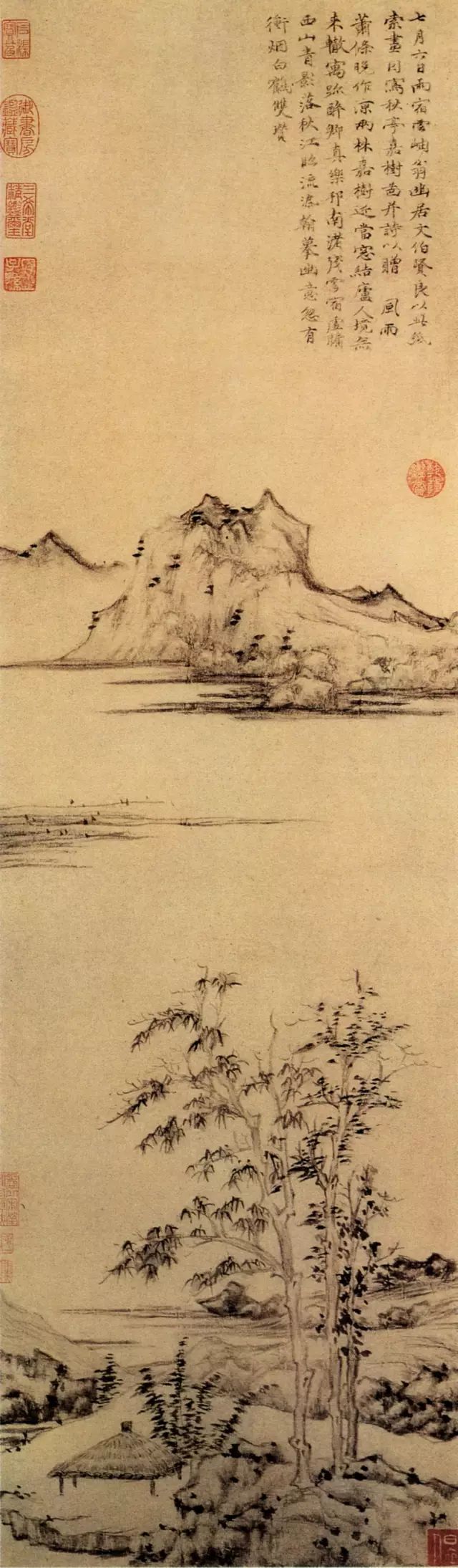 元代画家、诗人。倪瓒博学好古,家雄于财,四方名士日至其门。元顺帝至正初忽散家财给亲故,未几兵兴,逃渔舟以免。入明,黄冠野服,混迹编氓。工诗画,画山水意境幽深。有《清閟阁集》,与黄公望、王蒙、吴镇为元季四家。今人热衷于调侃倪瓒的洁癖,其实,他的小楷,尤其是画作题跋上的小楷,用笔迥异于时人,结字自是多有奇趣,意境高古而潇逸。值得注意的是,倪瓒这一路用笔之法,不同于现在普遍流行的《灵飞经》。他的书法作为在野的高人韵士,参禅学道,浪迹天涯 ,以一注冰雪之韵,写出了他简远萧疏,枯淡清逸的特有风格。徐渭云:“瓒书从隶入,辄在钟繇《荐季直表》中夺舍投胎,古而媚,密而疏。” 倪瓒真正做到了既“隐”且“逸”,其书既遒劲、精美,又率意、简逸,无怪乎后人多称其为“倪高士”。文征明、董其昌都曾高度赞美过他的书法。文征明评曰:“倪先生人品高轶,其翰札奕奕有晋宋风气 。”董其昌评曰:“古淡天真,米痴(即米芾)后一人而已。”倪瓒与格守帖学的书法比较,完全是两种迥然不同的风格,不免遭人非议。如项穆指责倪瓒“下笔之际,苦涩寒酸。纵加以老彭之年,终无佳境也”。在中国艺术史上,画得好的不少,但在性格和癖好方面都让人眼前一亮的画家,可能只有倪瓒。艺术上,他是“元四家”之一,作品重笔墨意趣,将凄清冷寂、萧条淡泊的画风发挥到了顶峰,影响极其深远;交友上,他高傲孤寂,有苛刻的标准;他还有重度洁癖,几乎所有关于他的记载,都曾提到这一点。《江渚风林图》 倪瓒 美国大都会博物馆藏 关注公众号:藏家群首先是那非同一般的厕所,建造时,他不仅用料讲究,构造还十分独特:那是一座空中楼阁,用香木搭建而成,高楼下是一个向上敞口的木格子,里面装满鹅毛。每当倪瓒需要如厕时,都得先爬到高楼上,谓之“凡便下,则鹅毛起覆之,不闻有秽气也”...朋友来访,与其品茗,待仆人打回泉水来,倪瓒吩咐道:提在身前的那桶水,拿来泡茶,后面的那桶拿去洗脚。朋友不解,追问原因。他说,前桶的水干净,所以用来泡茶,后面的水,怕是已被仆人的屁污染了,所以得拿去洗脚...倪瓒每天都会安排仆人对庭院清理多遍,对重度洁癖者来说,这似乎可以理解,但每次还要将院中的梧桐树洗刷多遍就不好理解了...长此以往,梧桐树死了好几棵,甚至成了标本。不过,倪瓒乐此不疲,还专门画过《洗桐图》,写过《洗桐诗》。倪瓒年轻时,家境殷实,画画只是消遣和爱好,所以遇见志趣相投的人,赠画是常有的事,但对他眼中的“俗人”,则是重金不卖。元末农民起义军将领张士信曾派人送重礼给倪瓒,请他作画,心高气傲的倪瓒觉得受到了侮辱,大怒,说“我不是你们王府的画师!”然后撕绢退钱。张士信怀恨在心,一天在湖边相遇,便差人打了他。奇怪的是,张士信无论用什么招式,倪瓒自始至终都是一声不吭,张士信未得到他的求饶,只好作罢。后来旁人问倪瓒原因,他说,“我一张口便俗了”...如果这是倪瓒对“俗人”的不屑,那他对朋友的标准就更高了。一次客人来访,开始时气氛平和,后来倪瓒见其“言貌粗率”,突然大怒,直接给了对方大耳光,双方不欢而散。与他断交的,还有宋代皇室后裔赵行恕。倪瓒因其远道而来,特意拿出亲制的清泉白石茶招待,没想到赵行恕太过耿直,当场给这款茶一个差评,倪瓒驳斥道,“吾以子为王孙,故出此品,乃略不知风味,真俗物也”。随后,二人悍然绝交。这些都是关于倪瓒的趣事,并不是他成为“元四家”的基石,使他名留至今的当然还是那些高逸的山水画。在人生的后 20 年,倪瓒一直泛游太湖,他面对如此的优美景致,内心并没有太多波动,清净至极。无论是近处的枯树,还是远处的山峦,他都只用极少的笔墨,有些时候,甚至连一颗红色的印都不钤(多数印章都是后人所印),但却勾勒出了一位世外高人的遁世脱俗之感。《渔庄秋霁图》被认为是倪瓒的代表作,典型的“一水两岸”式构图,全画分近、中、远三景,近处是小小的土坡,上有 6 株高低不一的树,隔岸是两道山丘,中景为一片湖光,但倪瓒一笔未画,这也许正是他的用意所在——水无波纹,一片空明。他的画,在元代并没有得到社会的普遍认同,但在知识界却享有很高的声誉。倪瓒与黄公望是相差 32 岁的忘年交,黄公望用 4 年时间完成了经典的《富春山居图》,而在 80 岁高龄时,他用 5 年时间为倪瓒画了一幅《江山揽胜图》,可见他对倪瓒的喜爱。1363 年,倪瓒之妻蒋氏病逝,外加长子早逝、次子不孝,62 岁的他内心极其苦闷,于两年后完成的《谿山图》比以往更加萧瑟空灵,那几棵枯树虽没有多少生机,却依然挺拔。朱元璋建立明朝时,他 67 岁,鉴于其声望,朱元璋意图召他进京供职,倪瓒坚辞不赴,作诗云:“只傍清水不染尘”。倪瓒的才情还不止于此,苏州著名古典园林狮子林也是在他的参与下最终完成造园,他不仅题诗作画,还绘有《狮子林图》一画。那年,倪瓒 73 岁(一年后病逝)。至明代中期,倪瓒的画已被世人奉为至宝,富贵人家以有其画为幸事。后来,连印章达人乾隆都说:“元四大家,独云林格韵尤超。(倪瓒号云林)”观倪瓒的画,可以感受到一种荒寒古寂、自然平淡的力量,这种力量不同于范宽,也不同于黄公望,它亲切感人,没有任何压迫感。