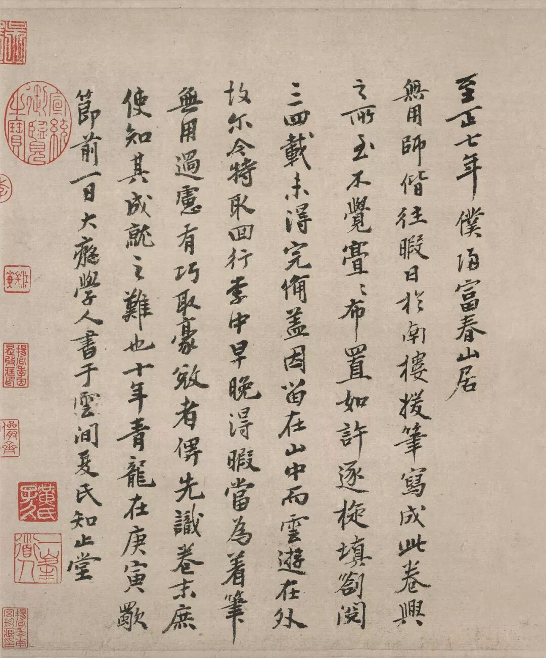 四年之后,黄公望84岁,被后世称为"中国十大传世名画"之一的《富春山居图》全部完成。