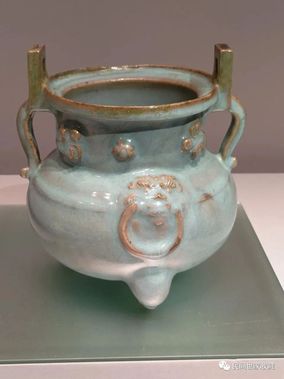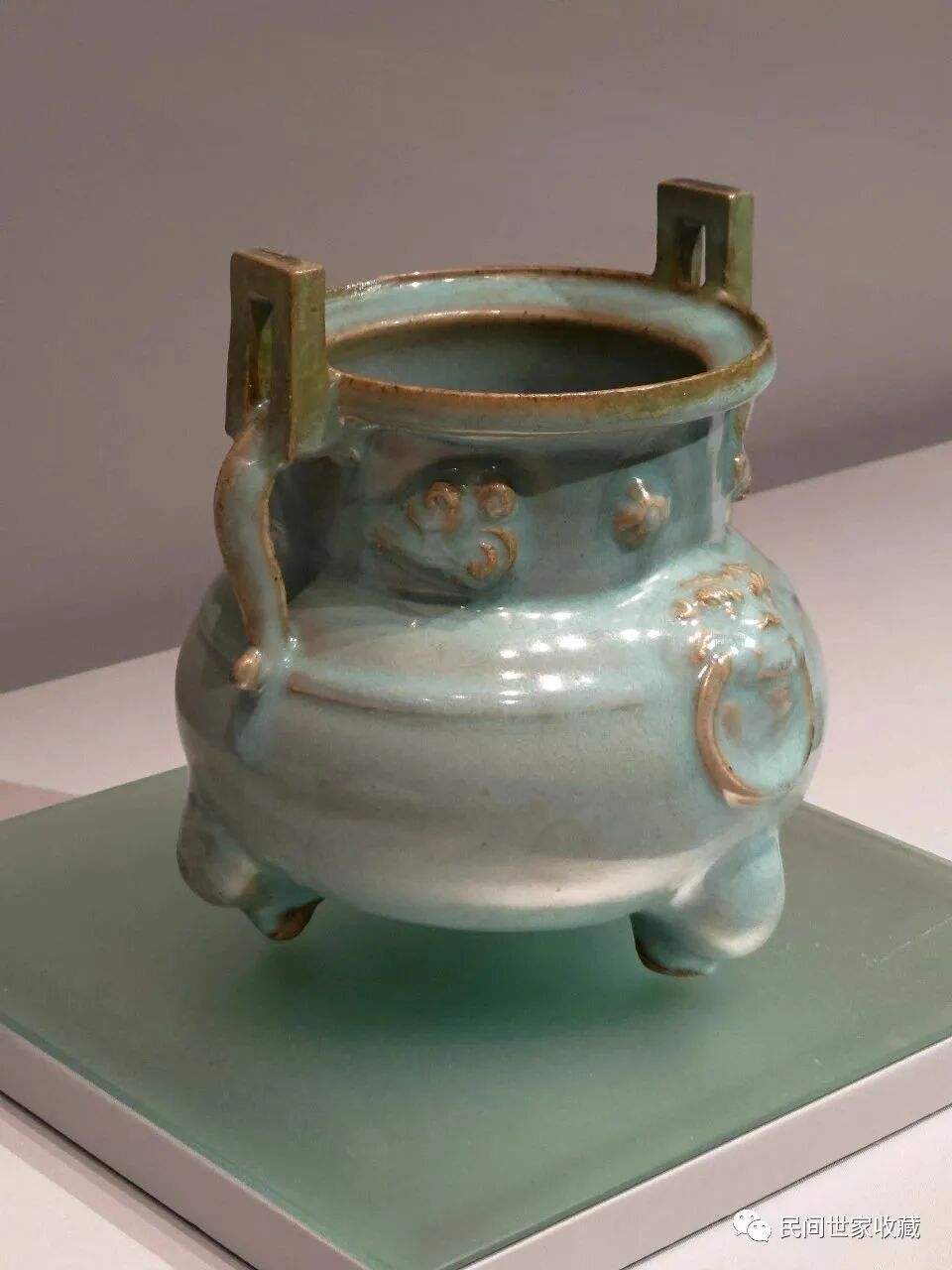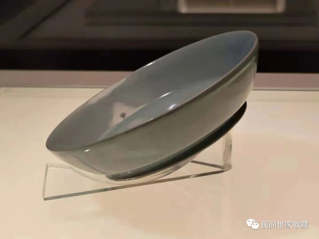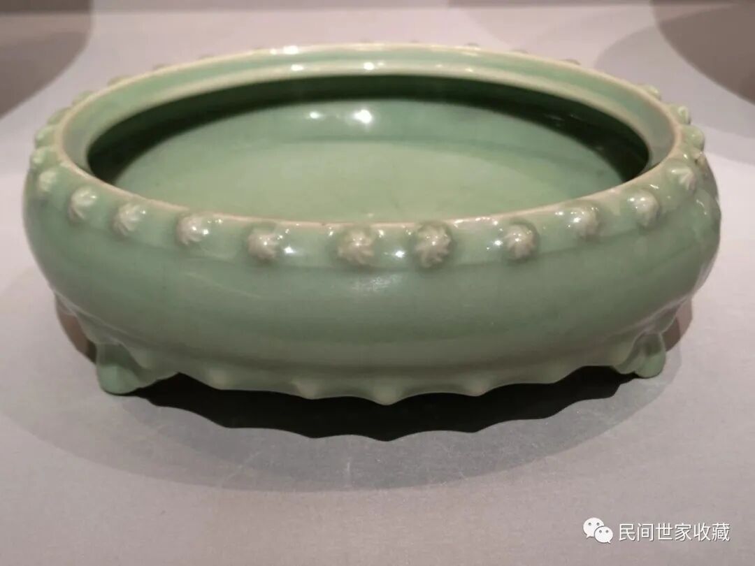 这件断代为北宋晚期的汝窑青釉瓷洗,由于拍摄者提供的照片不够清晰,只能模糊的看其韵味,从图可看出,瓷洗的口沿线做的非常圆润,外壁轮廓也是很挺拔,整体釉色青翠,釉面酥光莹润,宝光内敛,是否开片看不清,此等上品不能上手品鉴,实乃遗憾。
