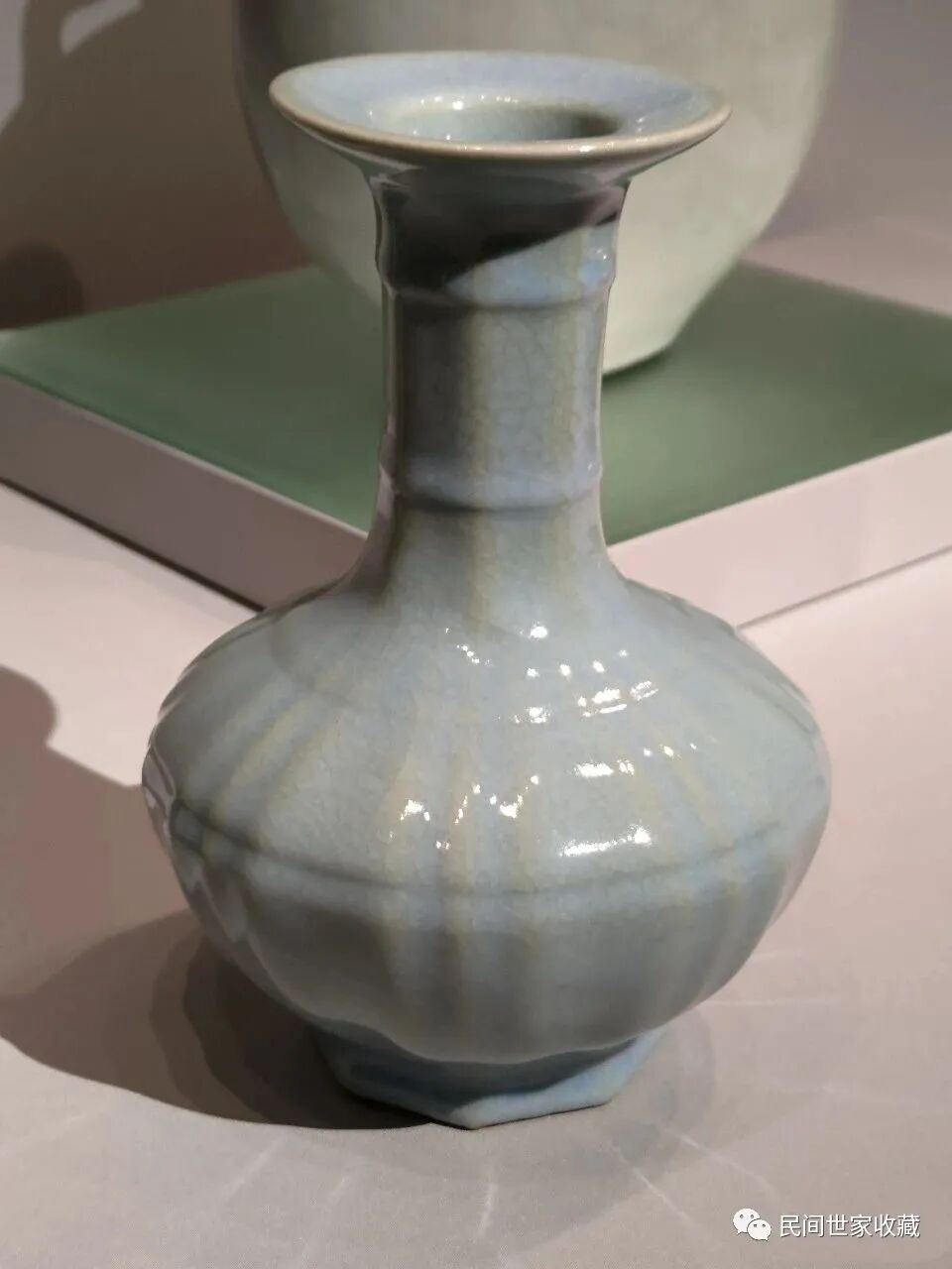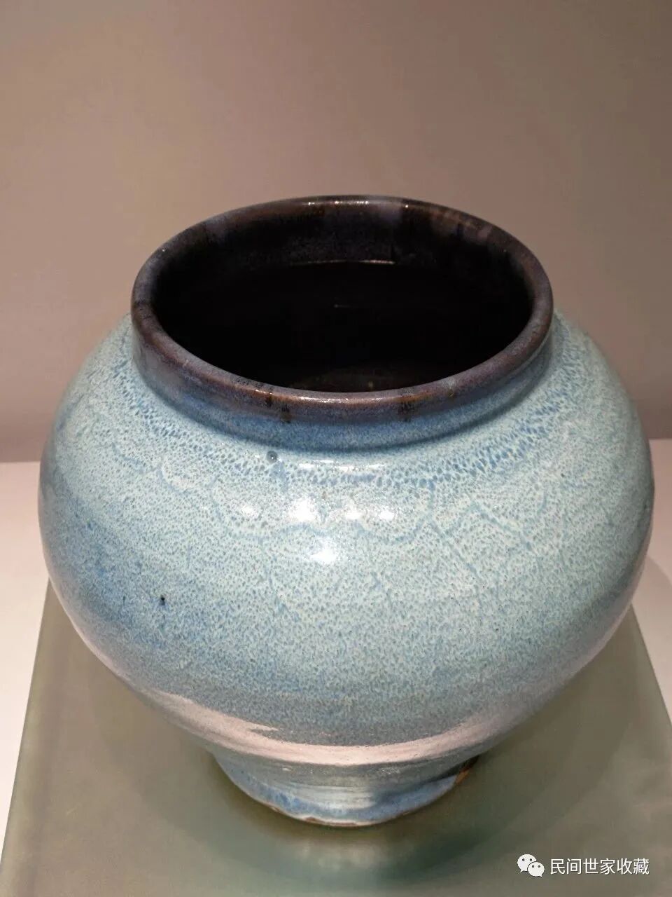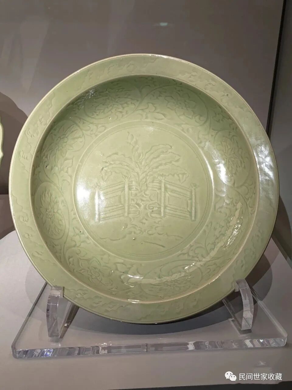 这件断代为北宋晚期的汝窑青釉瓷洗,由于拍摄者提供的照片不够清晰,只能模糊的看其韵味,从图可看出,瓷洗的口沿线做的非常圆润,外壁轮廓也是很挺拔,整体釉色青翠,釉面酥光莹润,宝光内敛,是否开片看不清,此等上品不能上手品鉴,实乃遗憾。