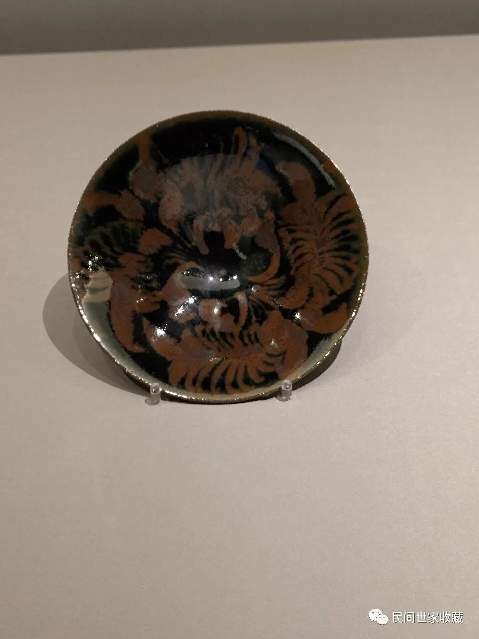 这类黑釉地施铁锈花纹装饰的黑釉盏,金元时期广泛流行于宋金元时期河南焦作的当阳窑、河北邯郸的磁州窑及山西的各类窑口,尤以金代的当阳窑颇多。