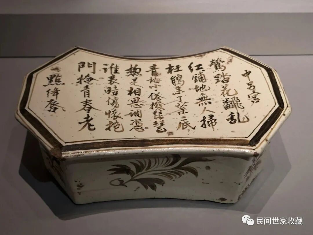 这件瓷枕的内容稍有不同,极有可能是窑工添加改动了部分,我个人更喜欢窑工版的那首,尤其这句“倦拨琵琶,总是相思调,凭谁表?”相比原句的“知音少”,则更含蓄,也更伤怀,将宋词的这首宋词的委婉、忧愁和伤怀之情,展现的淋漓尽致,令人读之意犹未尽啊!