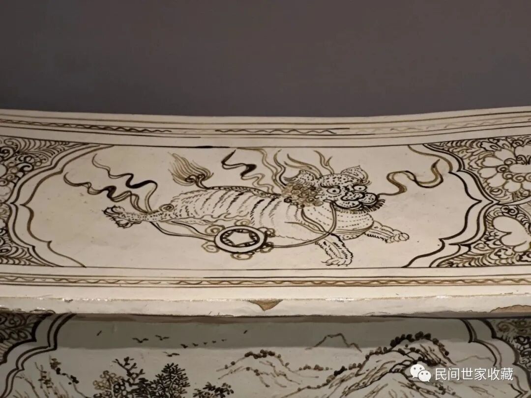 这类瓷枕产品,在金元时期,河南的登封窑生产的数量较大。其中的"珍珠地“纹,是整个磁州窑产品装饰纹饰中的一大特色。