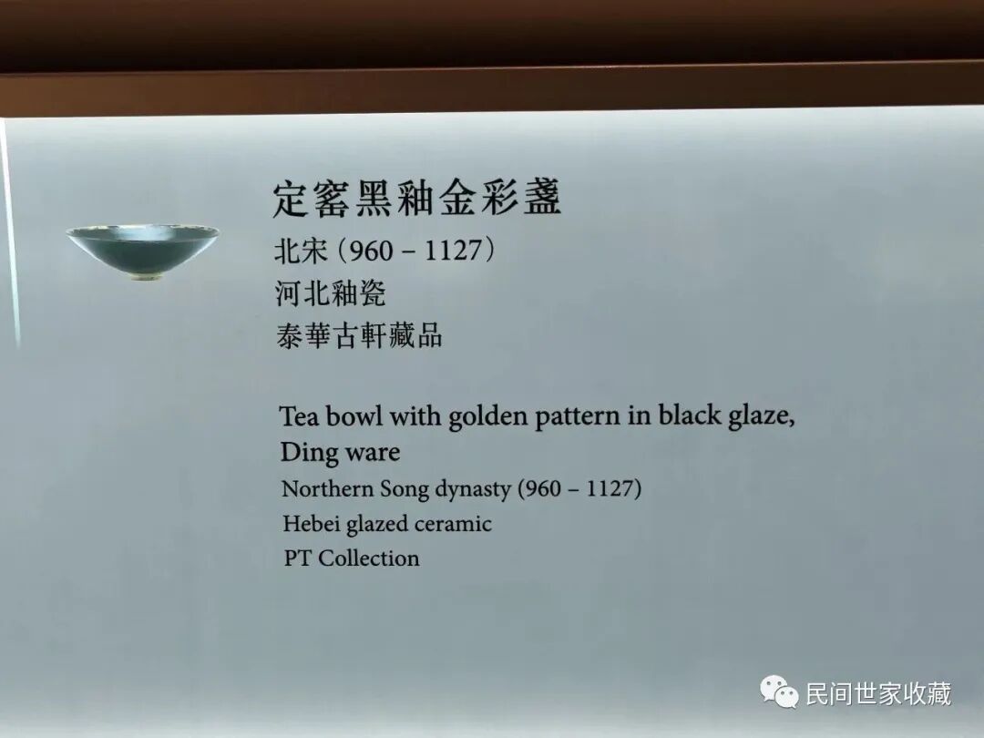 展方断代为北宋晚期的这件定窑黑釉描金斗笠形盏,从图可见,釉面黝黑闪亮,口沿出描金历经八九百年的岁月沧桑依然金光灿烂,且内壁也还依稀可见金彩痕迹,可知当时这件盏的使用者乃非富即贵阶层,且极有可能为皇室贡瓷之选,由此联想到此前拍卖释出的那件临宇山人旧藏“天外飞仙”定窑黑釉盏,行内多数行家认为极有可能是河南的当阳裕窑产品,而非定窑瓷,现与此件定窑黑釉盏横向比较,个见其胎釉型等表现出来的特征看,确有不同。