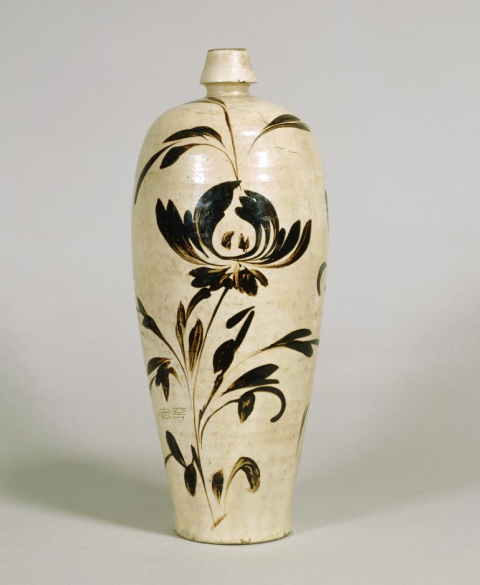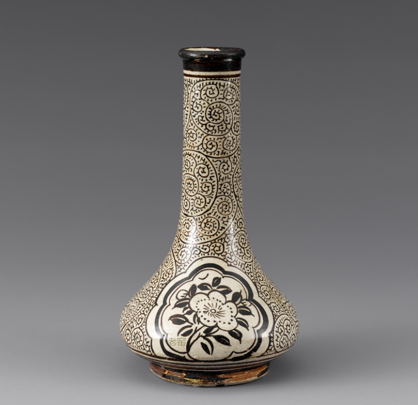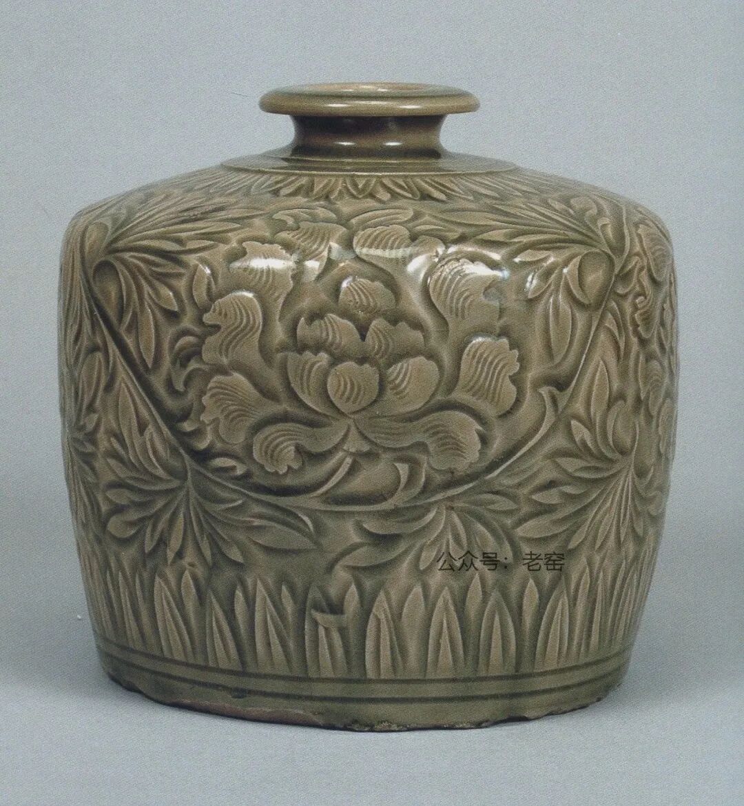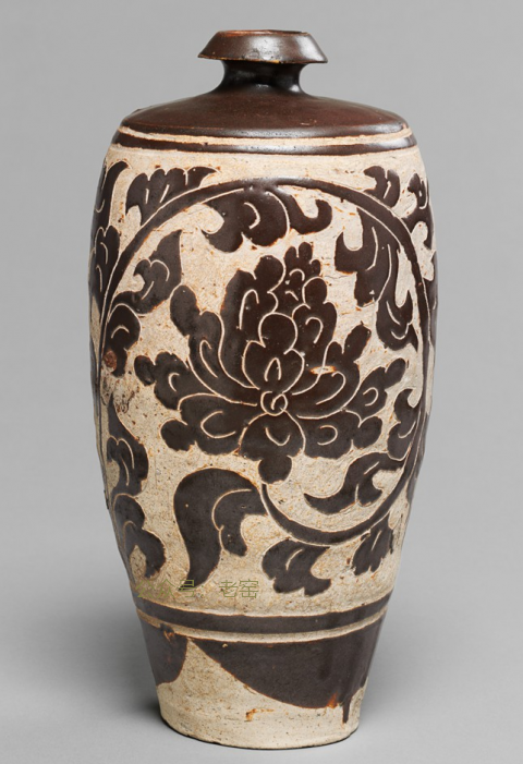 耀州窑牡丹纹嘟噜瓶