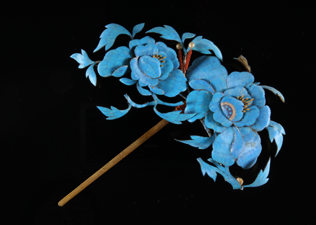 清代 点翠牡丹花纹头花