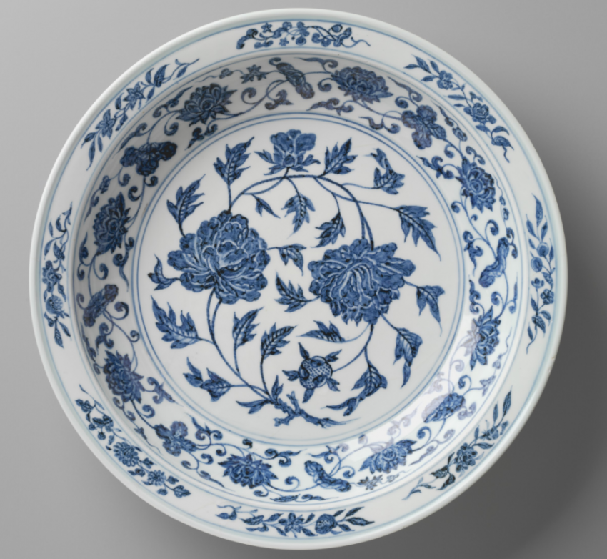 定窑刻花牡丹纹盘