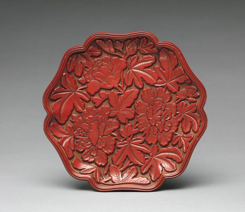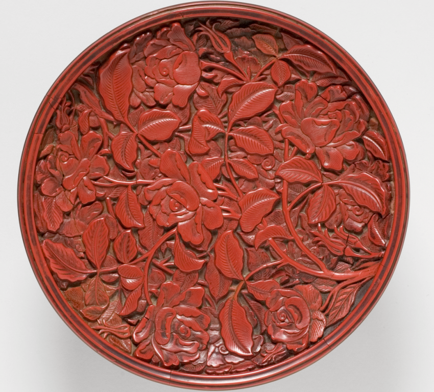 明代 永乐 剔红牡丹纹圆盘