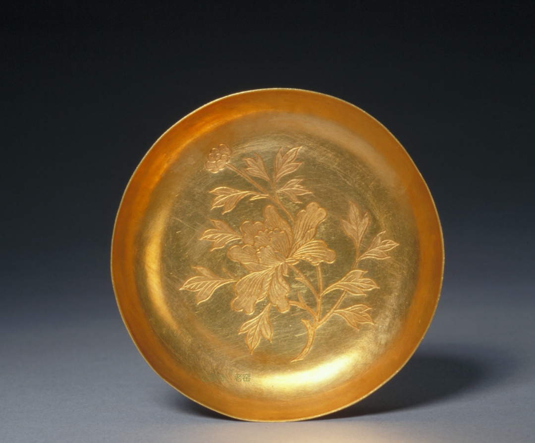 清代 金錾花牡丹纹碟