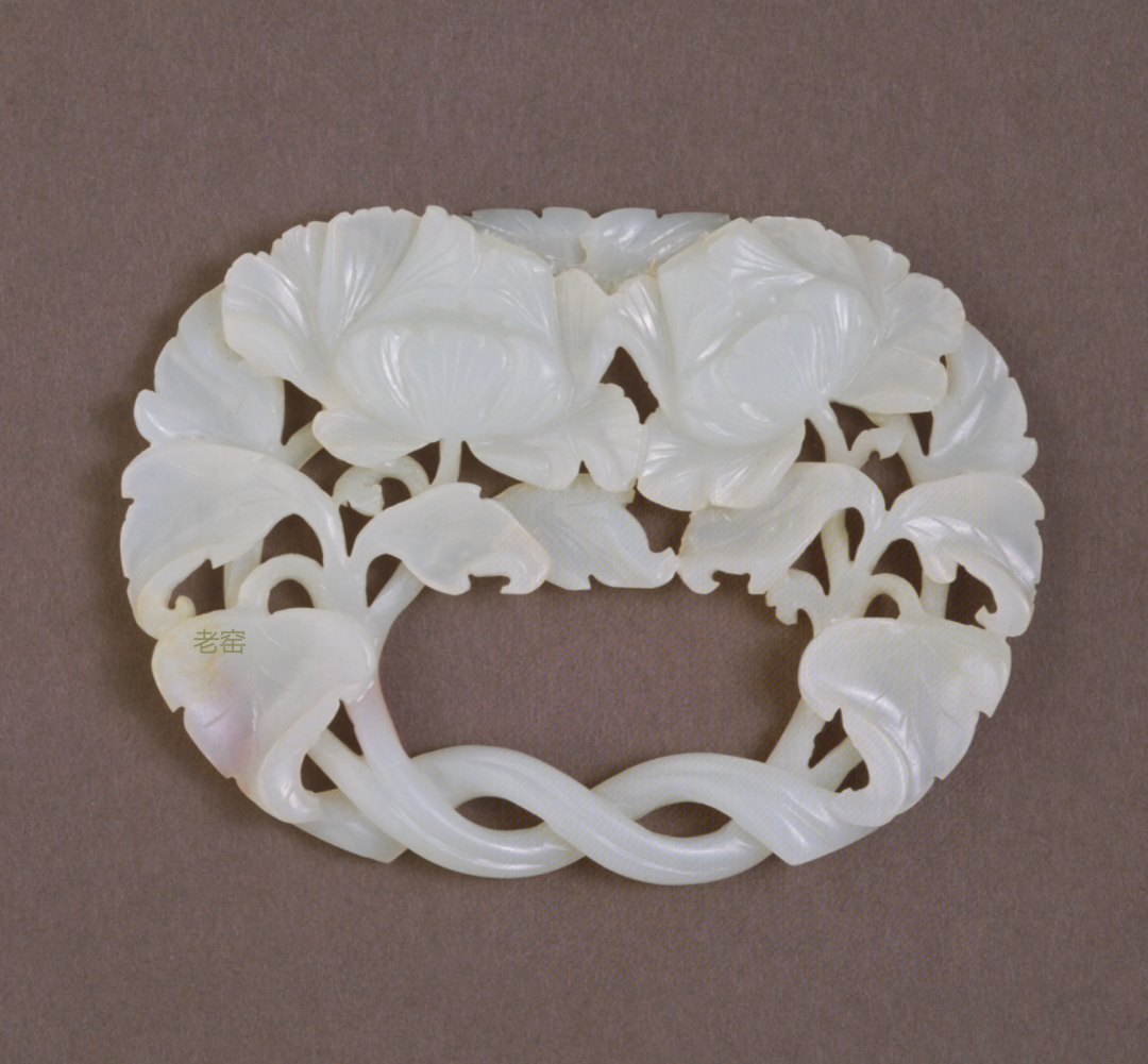 明代 青玉镂雕牡丹佩