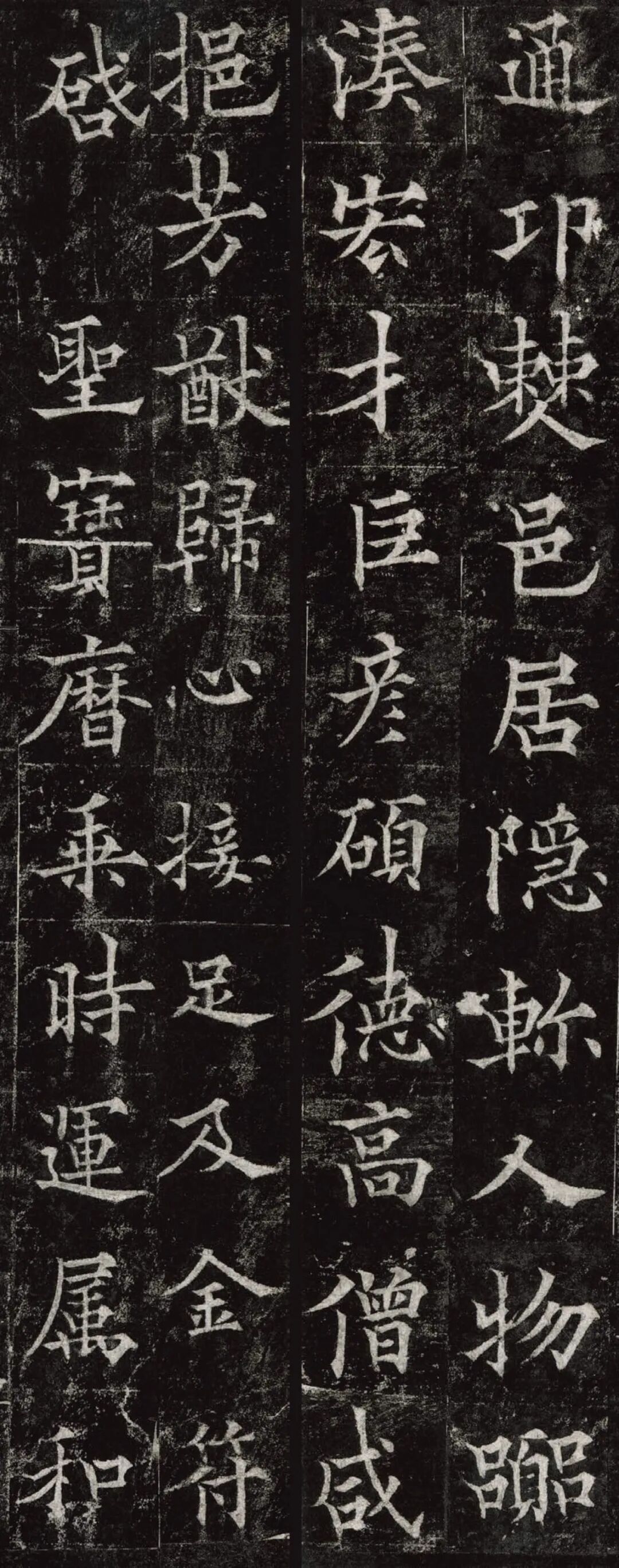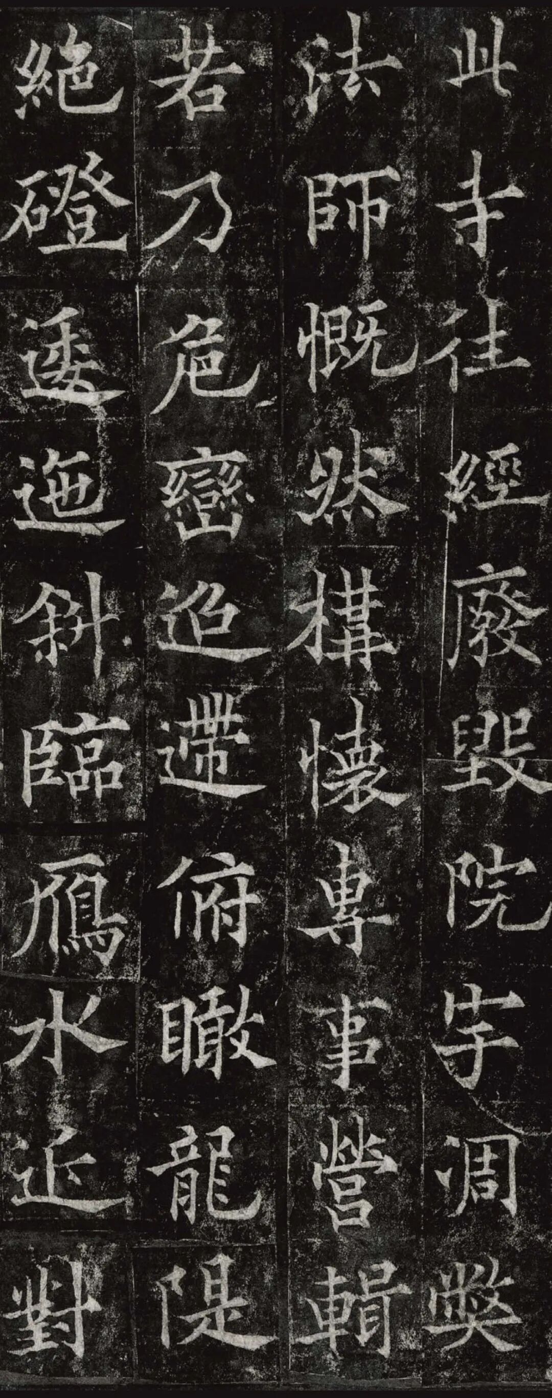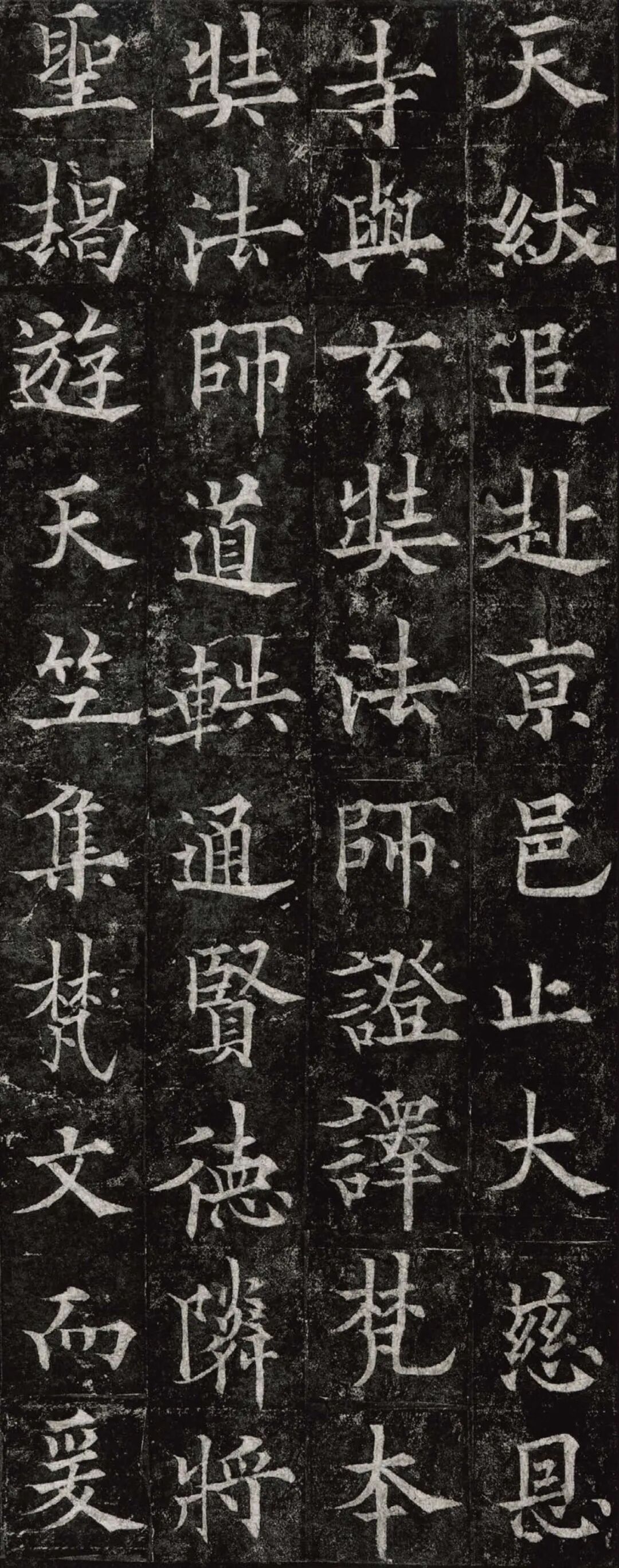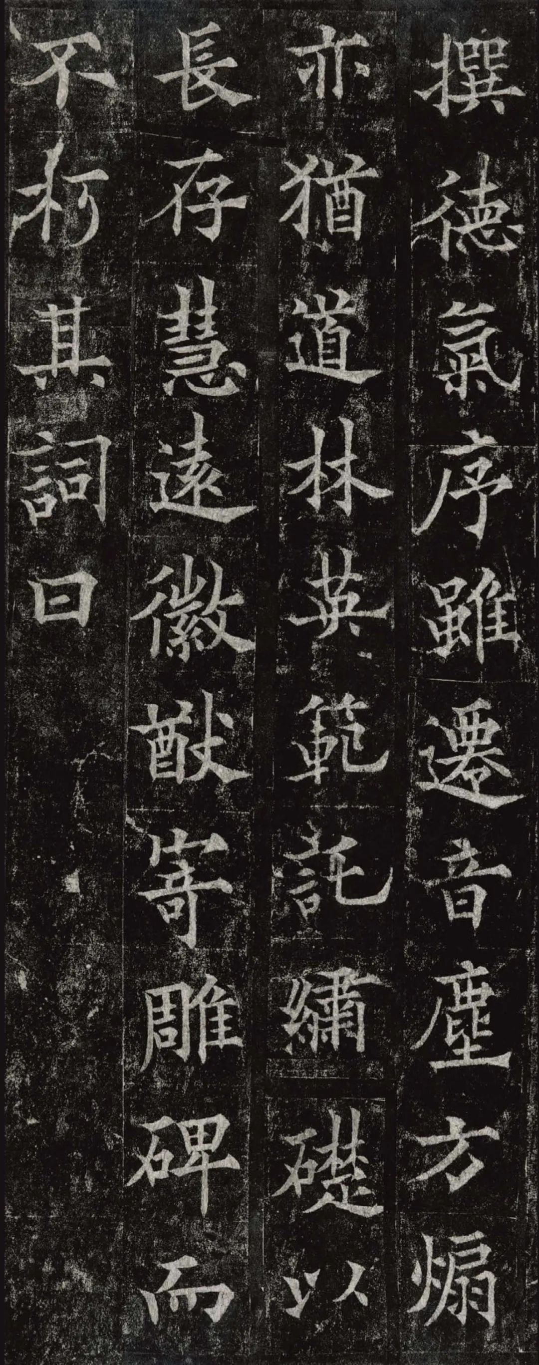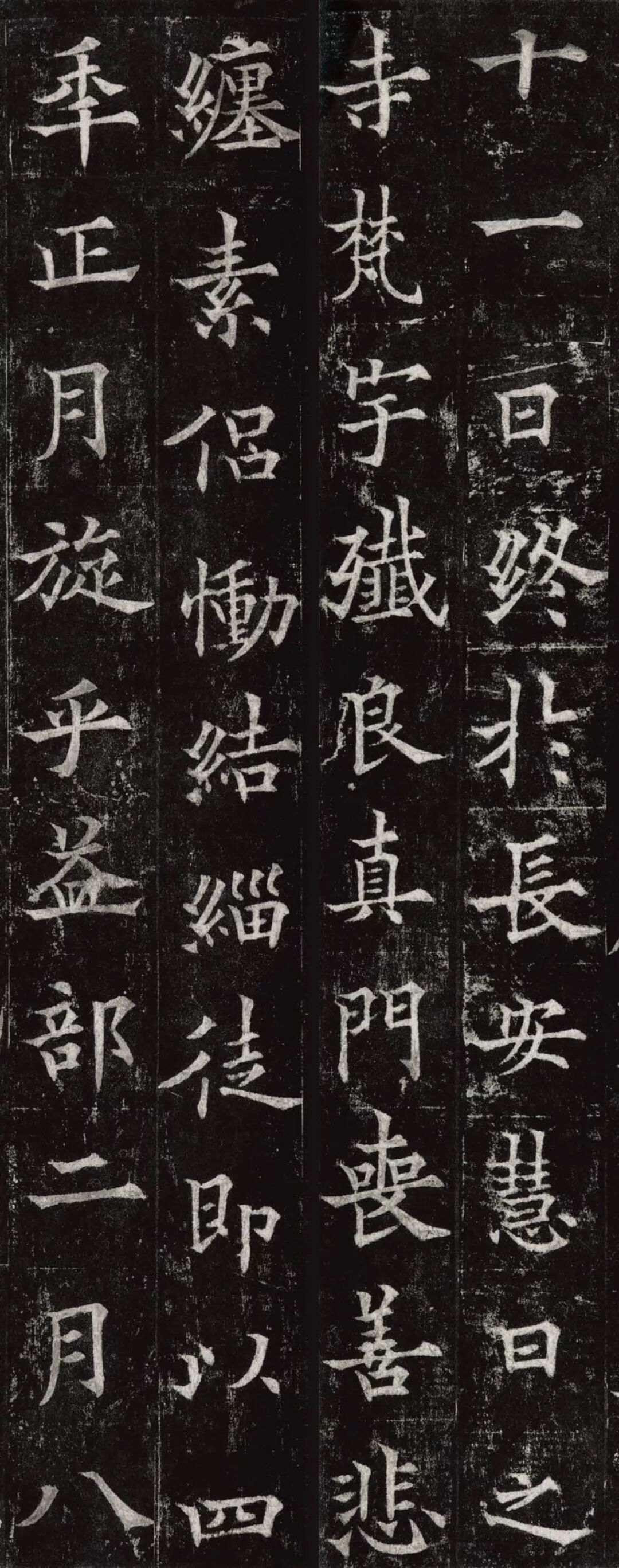 欧阳通,字通师,潭州临湘(今湖南长沙)人,欧阳询第四子。累官中书舍人,殿中监,司礼卿,判纳言事,封渤海县子。后因反对武承嗣为太子被杀。新旧《唐书》有传。欧阳通童年时期,父亲便过世了,母亲徐氏教他学习父书,锐志赞研,刻意摹习,得以继承家法,得询劲锐而险峻过之。成为唐代著名的书法家,与其父欧阳询齐名,有“大小欧阳”之称。欧阳通学书时期,正当初唐书法发生变化的时期,而他以“善学父书”著称。《道因法师碑》,全称《大唐故翻经大德益州多宝寺道因法师碑文并序》。李俨撰文,欧阳通书,华原县常长寿、范素镌刻。唐高宗龙朔三年(663)建。碑高320厘米,宽140厘米。正书,34行,行73字。碑额正书“故大德因法师碑”七字,额字小且横书,比较少见。碑头雕为螭首,碑额处雕饰佛龛,及释迦牟尼、观自在、大势至三佛像,是唐代浮雕极有特色的精品。碑文文字完整,基本无缺损。碑石现存西安碑林。欧阳通书法,出于父,写得更瘦硬,更劲挺,特别是主笔横画在收笔时末锋飞起,富有浓重的隶意,这在此碑帖中多有体现。宋董迪《广川书跋》评云:“通笔力劲险,尽得家风。”朱长文《续书断》以为:“虽得询之劲锐,而意态不及也,然亦可以臻妙品矣。”按,通早孤,未得乃父亲炙,书法由母徐氏指导,蒐讨父迹,力学不倦,纵有异同,或谓不及,亦自在情理之中。明王世贞《弁州山人稿》评其书 “《道因碑》如病维摩,高格贫士,虽不饶乐,而眉宇间有风霜之气,可重也。”杨守敬《平碑记》评价:碑森焉若武库矛戟”,正是指字里行间所流露出的刚直不阿的气概,可谓书如其人。汪珂玉《珊瑚网》“瘦怯于父而险峻过之”。清何绍基称此碑“险劲横铁,往生育突过乃翁”。杨士奇《东里续集》“矩蠖森严,意态飘逸,但少含蓄之趣耳”,故以“风霜之气”为喻。叶昌炽《语石》评云:“《果道因法师碑》戈戟森森,锋颖四出,六朝淳古之气,浇漓尽矣。盖能得之《皇甫碑》之险峻,而无《化度》之淳蓄,非善学率更者也。余谓小欧,但传其父分隶法。”