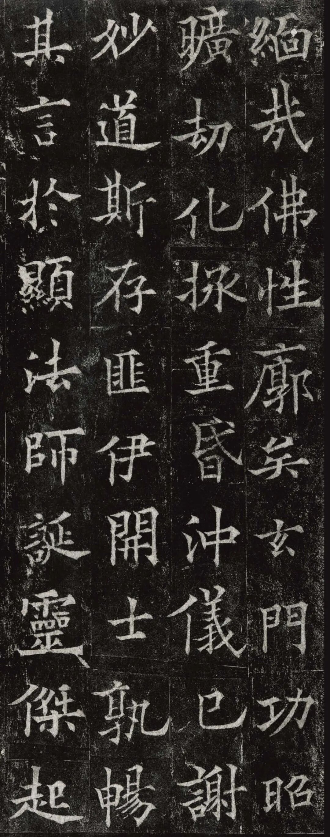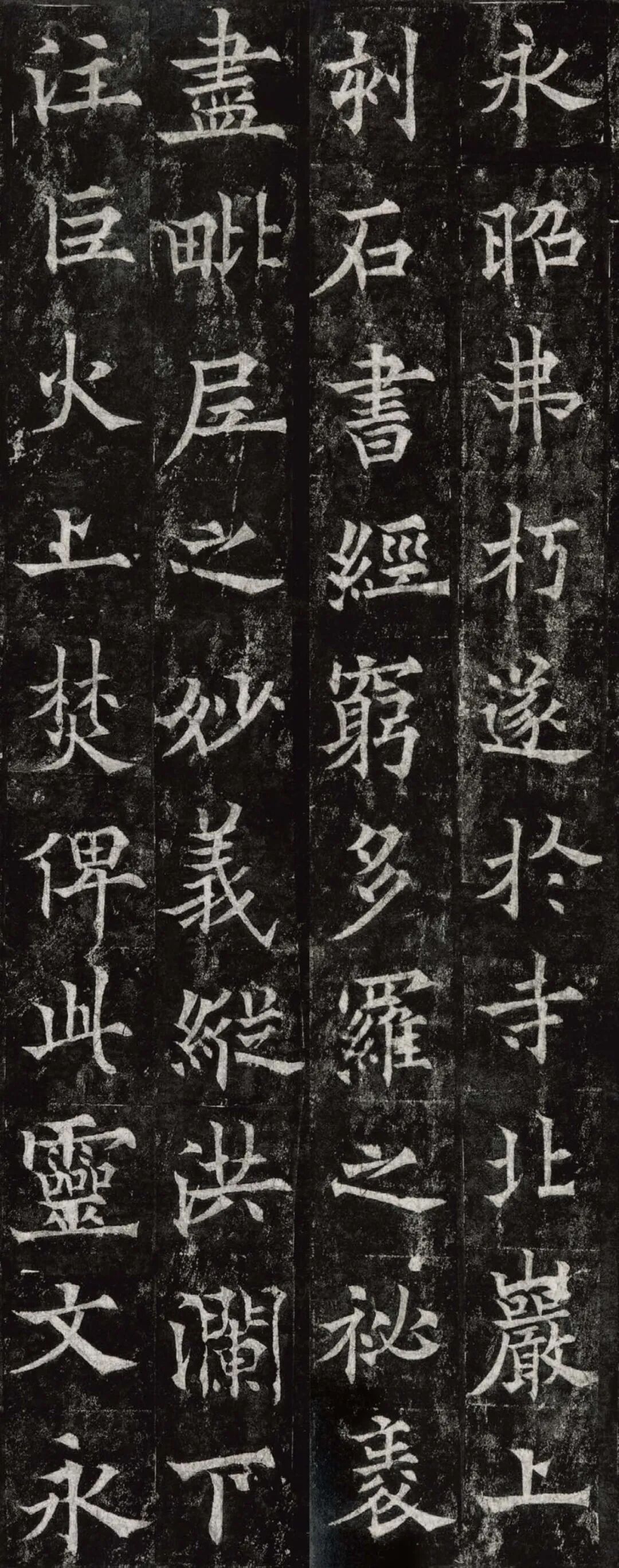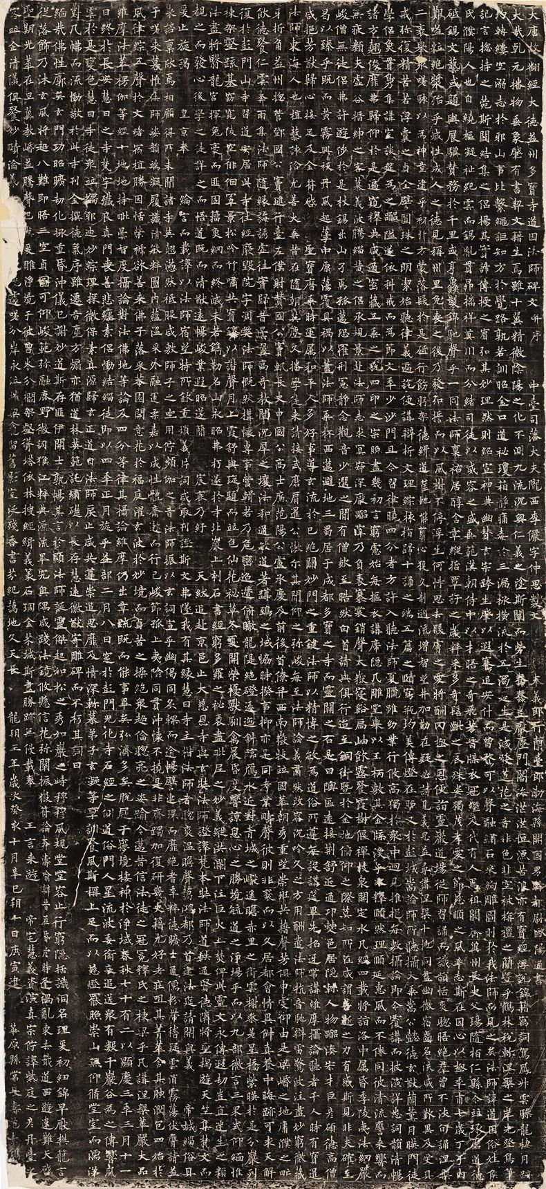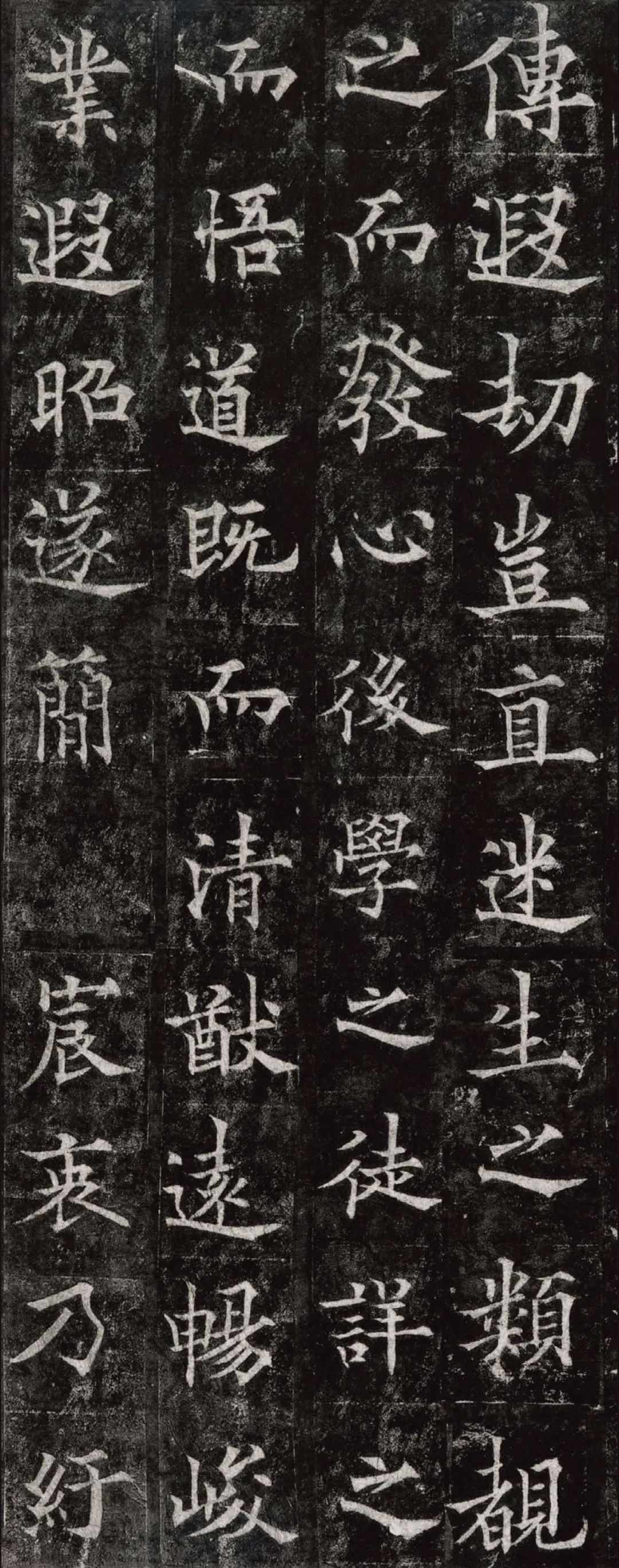 欧阳通,字通师,潭州临湘(今湖南长沙)人,欧阳询第四子。累官中书舍人,殿中监,司礼卿,判纳言事,封渤海县子。后因反对武承嗣为太子被杀。新旧《唐书》有传。欧阳通童年时期,父亲便过世了,母亲徐氏教他学习父书,锐志赞研,刻意摹习,得以继承家法,得询劲锐而险峻过之。成为唐代著名的书法家,与其父欧阳询齐名,有“大小欧阳”之称。欧阳通学书时期,正当初唐书法发生变化的时期,而他以“善学父书”著称。《道因法师碑》,全称《大唐故翻经大德益州多宝寺道因法师碑文并序》。李俨撰文,欧阳通书,华原县常长寿、范素镌刻。唐高宗龙朔三年(663)建。碑高320厘米,宽140厘米。正书,34行,行73字。碑额正书“故大德因法师碑”七字,额字小且横书,比较少见。碑头雕为螭首,碑额处雕饰佛龛,及释迦牟尼、观自在、大势至三佛像,是唐代浮雕极有特色的精品。碑文文字完整,基本无缺损。碑石现存西安碑林。欧阳通书法,出于父,写得更瘦硬,更劲挺,特别是主笔横画在收笔时末锋飞起,富有浓重的隶意,这在此碑帖中多有体现。宋董迪《广川书跋》评云:“通笔力劲险,尽得家风。”朱长文《续书断》以为:“虽得询之劲锐,而意态不及也,然亦可以臻妙品矣。”按,通早孤,未得乃父亲炙,书法由母徐氏指导,蒐讨父迹,力学不倦,纵有异同,或谓不及,亦自在情理之中。明王世贞《弁州山人稿》评其书 “《道因碑》如病维摩,高格贫士,虽不饶乐,而眉宇间有风霜之气,可重也。”杨守敬《平碑记》评价:碑森焉若武库矛戟”,正是指字里行间所流露出的刚直不阿的气概,可谓书如其人。汪珂玉《珊瑚网》“瘦怯于父而险峻过之”。清何绍基称此碑“险劲横铁,往生育突过乃翁”。杨士奇《东里续集》“矩蠖森严,意态飘逸,但少含蓄之趣耳”,故以“风霜之气”为喻。叶昌炽《语石》评云:“《果道因法师碑》戈戟森森,锋颖四出,六朝淳古之气,浇漓尽矣。盖能得之《皇甫碑》之险峻,而无《化度》之淳蓄,非善学率更者也。余谓小欧,但传其父分隶法。”