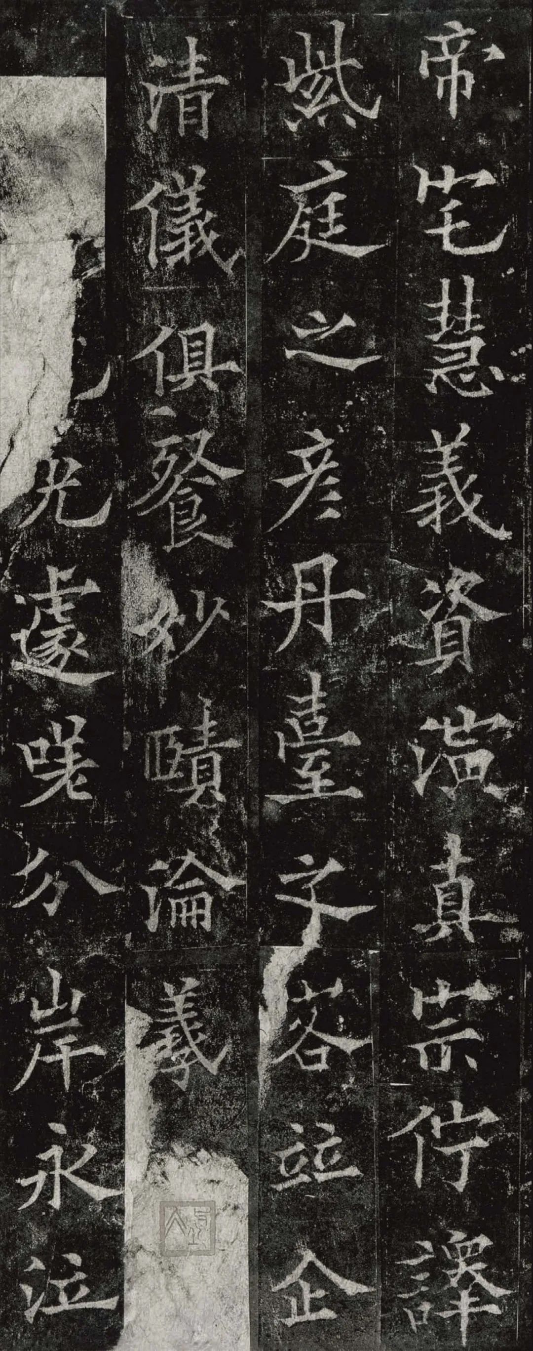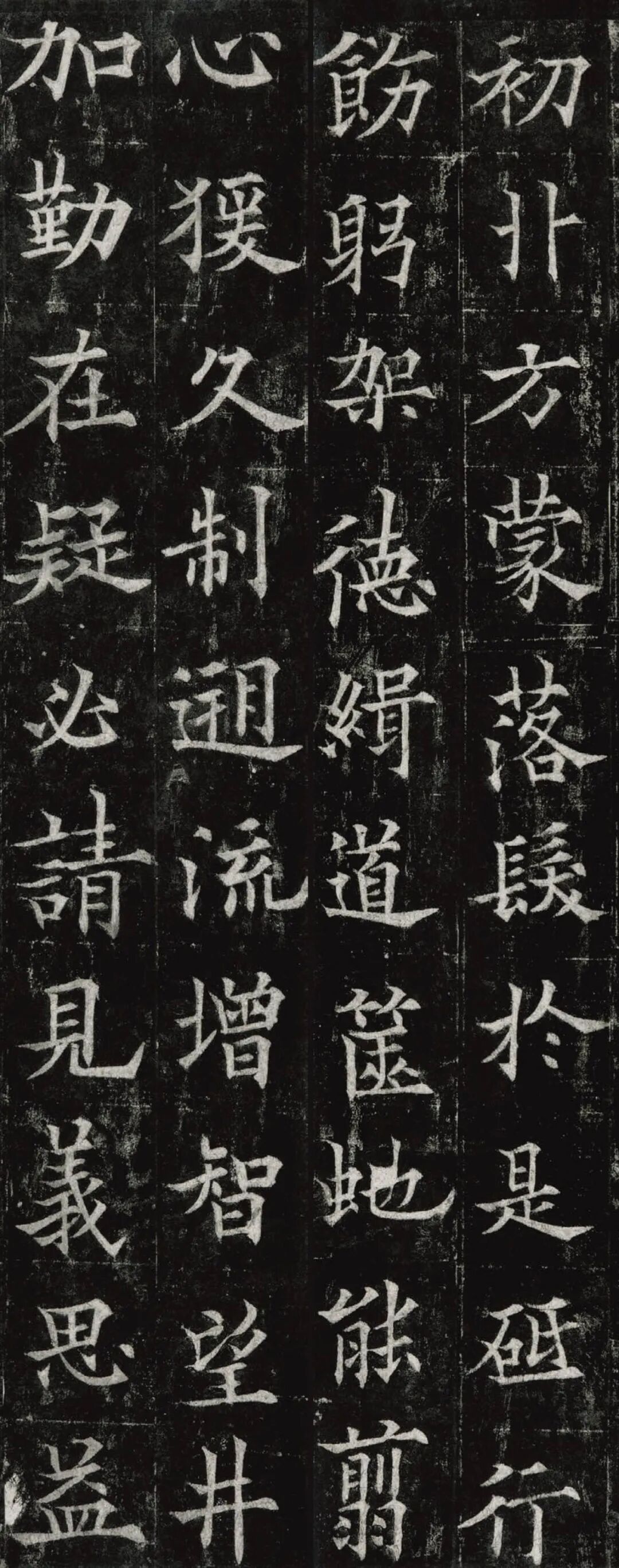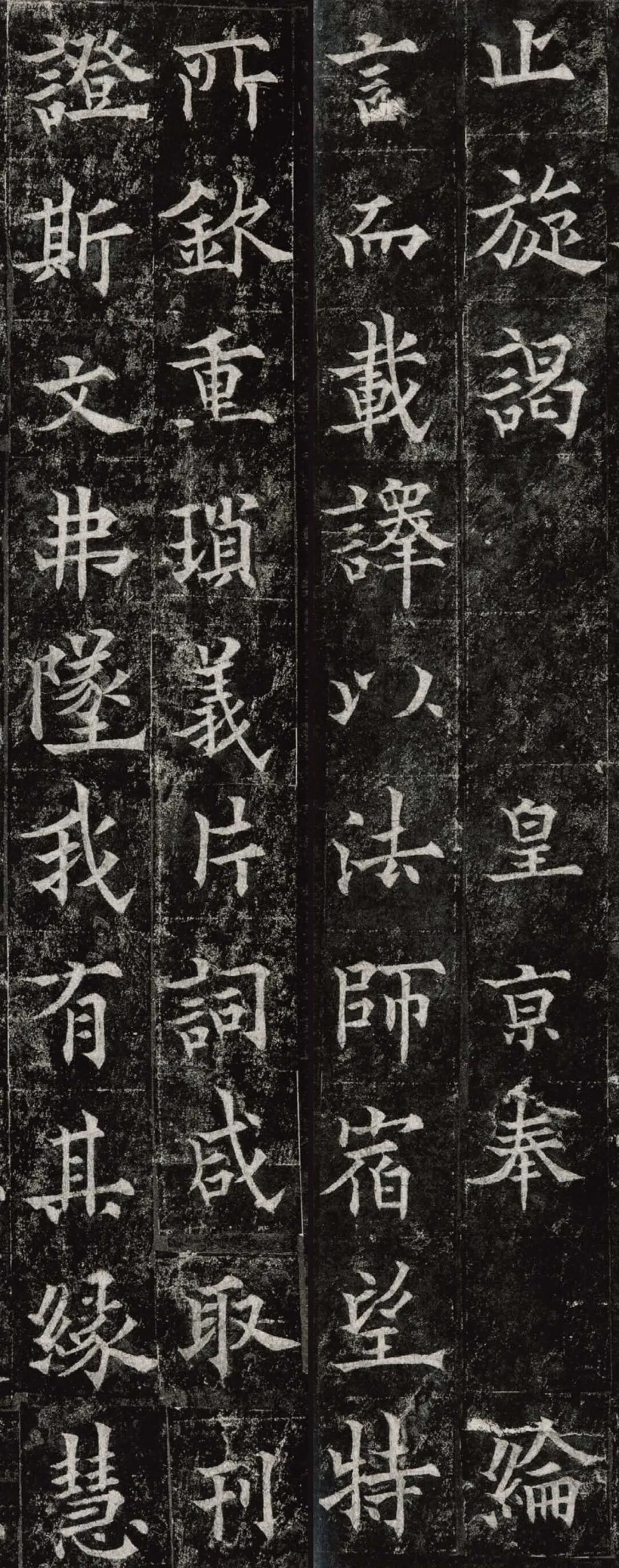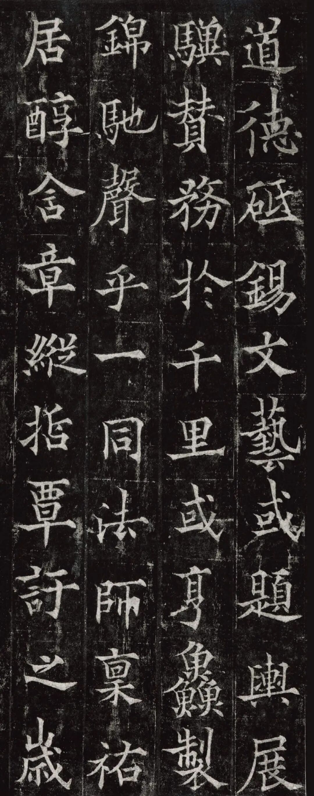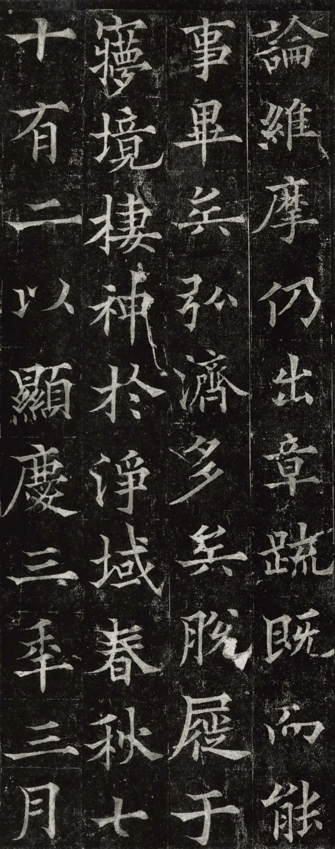 欧阳通,字通师,潭州临湘(今湖南长沙)人,欧阳询第四子。累官中书舍人,殿中监,司礼卿,判纳言事,封渤海县子。后因反对武承嗣为太子被杀。新旧《唐书》有传。欧阳通童年时期,父亲便过世了,母亲徐氏教他学习父书,锐志赞研,刻意摹习,得以继承家法,得询劲锐而险峻过之。成为唐代著名的书法家,与其父欧阳询齐名,有“大小欧阳”之称。欧阳通学书时期,正当初唐书法发生变化的时期,而他以“善学父书”著称。《道因法师碑》,全称《大唐故翻经大德益州多宝寺道因法师碑文并序》。李俨撰文,欧阳通书,华原县常长寿、范素镌刻。唐高宗龙朔三年(663)建。碑高320厘米,宽140厘米。正书,34行,行73字。碑额正书“故大德因法师碑”七字,额字小且横书,比较少见。碑头雕为螭首,碑额处雕饰佛龛,及释迦牟尼、观自在、大势至三佛像,是唐代浮雕极有特色的精品。碑文文字完整,基本无缺损。碑石现存西安碑林。欧阳通书法,出于父,写得更瘦硬,更劲挺,特别是主笔横画在收笔时末锋飞起,富有浓重的隶意,这在此碑帖中多有体现。宋董迪《广川书跋》评云:“通笔力劲险,尽得家风。”朱长文《续书断》以为:“虽得询之劲锐,而意态不及也,然亦可以臻妙品矣。”按,通早孤,未得乃父亲炙,书法由母徐氏指导,蒐讨父迹,力学不倦,纵有异同,或谓不及,亦自在情理之中。明王世贞《弁州山人稿》评其书 “《道因碑》如病维摩,高格贫士,虽不饶乐,而眉宇间有风霜之气,可重也。”杨守敬《平碑记》评价:碑森焉若武库矛戟”,正是指字里行间所流露出的刚直不阿的气概,可谓书如其人。汪珂玉《珊瑚网》“瘦怯于父而险峻过之”。清何绍基称此碑“险劲横铁,往生育突过乃翁”。杨士奇《东里续集》“矩蠖森严,意态飘逸,但少含蓄之趣耳”,故以“风霜之气”为喻。叶昌炽《语石》评云:“《果道因法师碑》戈戟森森,锋颖四出,六朝淳古之气,浇漓尽矣。盖能得之《皇甫碑》之险峻,而无《化度》之淳蓄,非善学率更者也。余谓小欧,但传其父分隶法。”