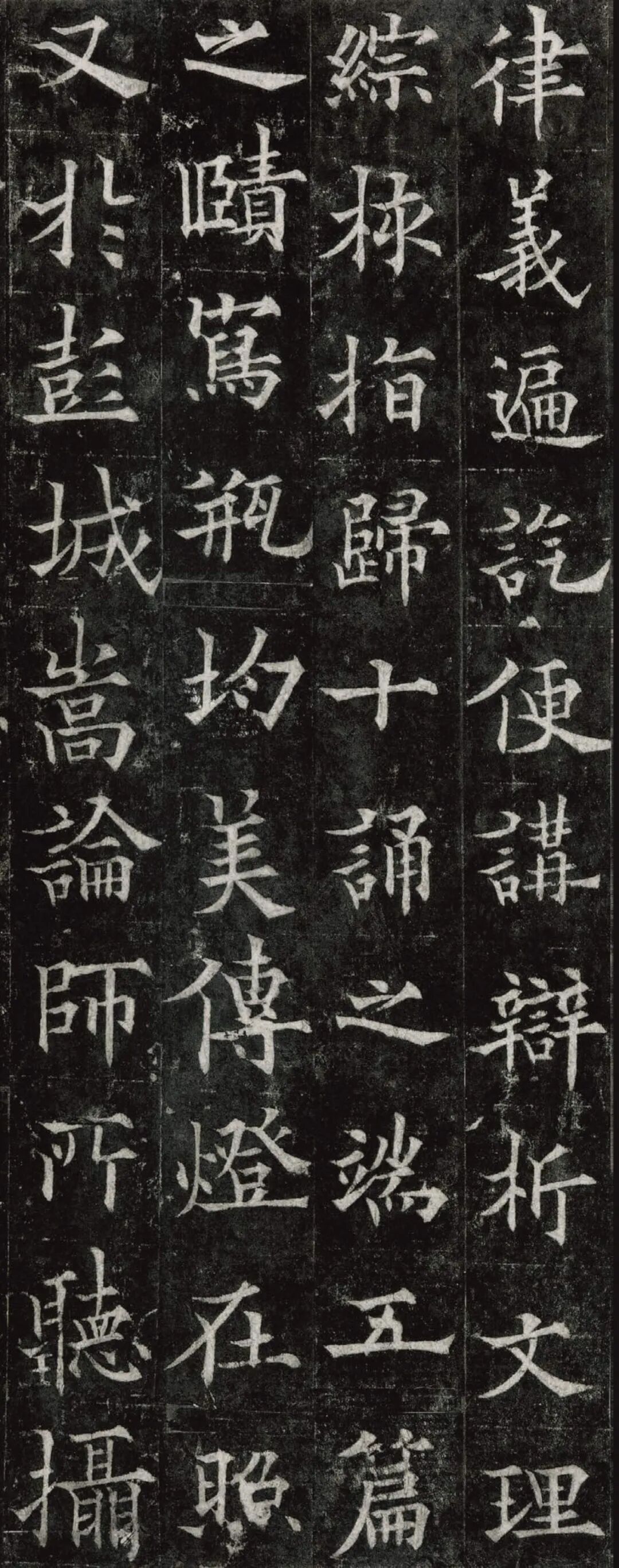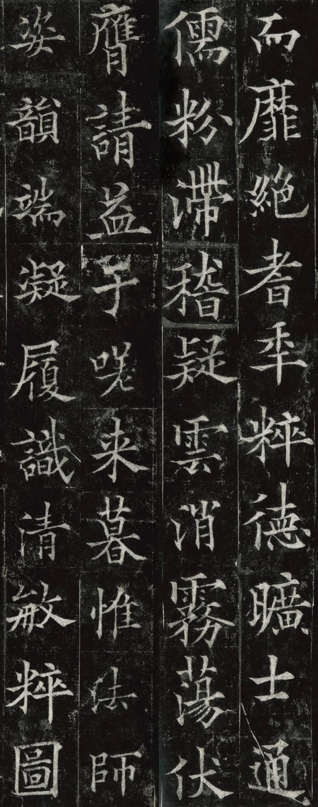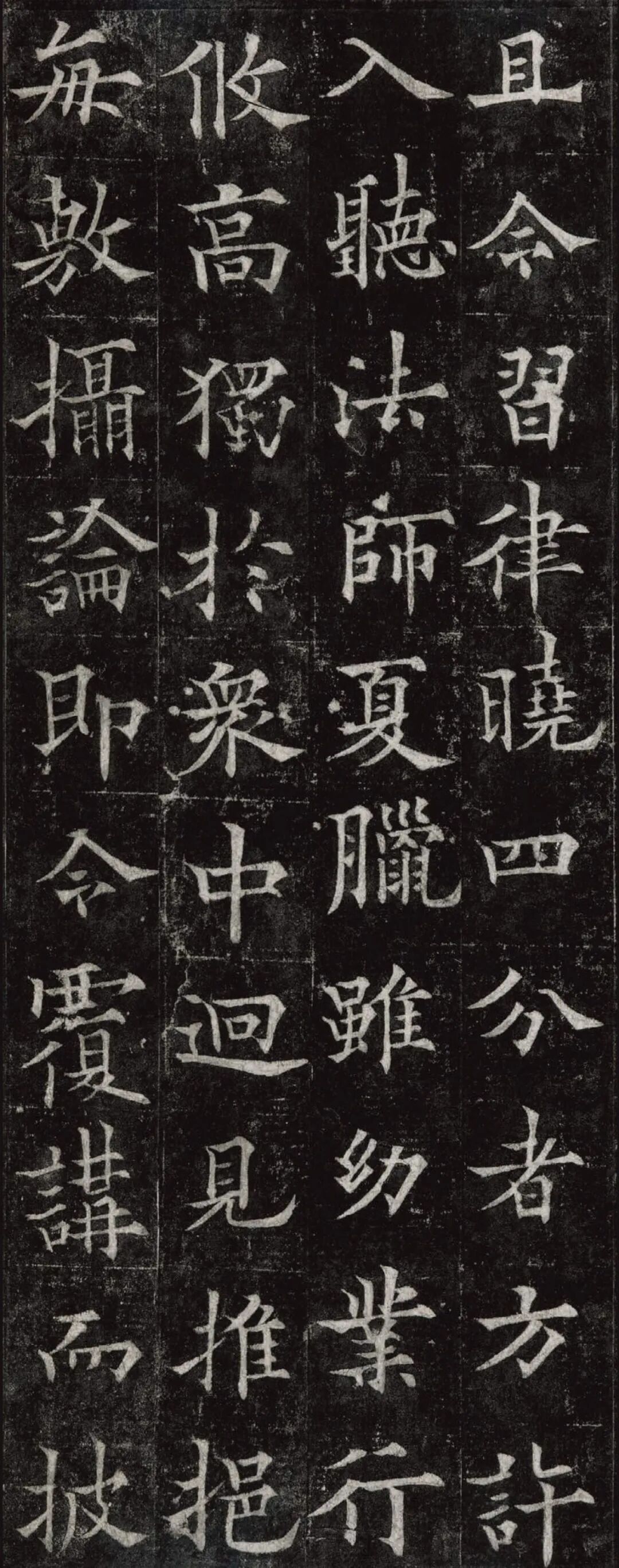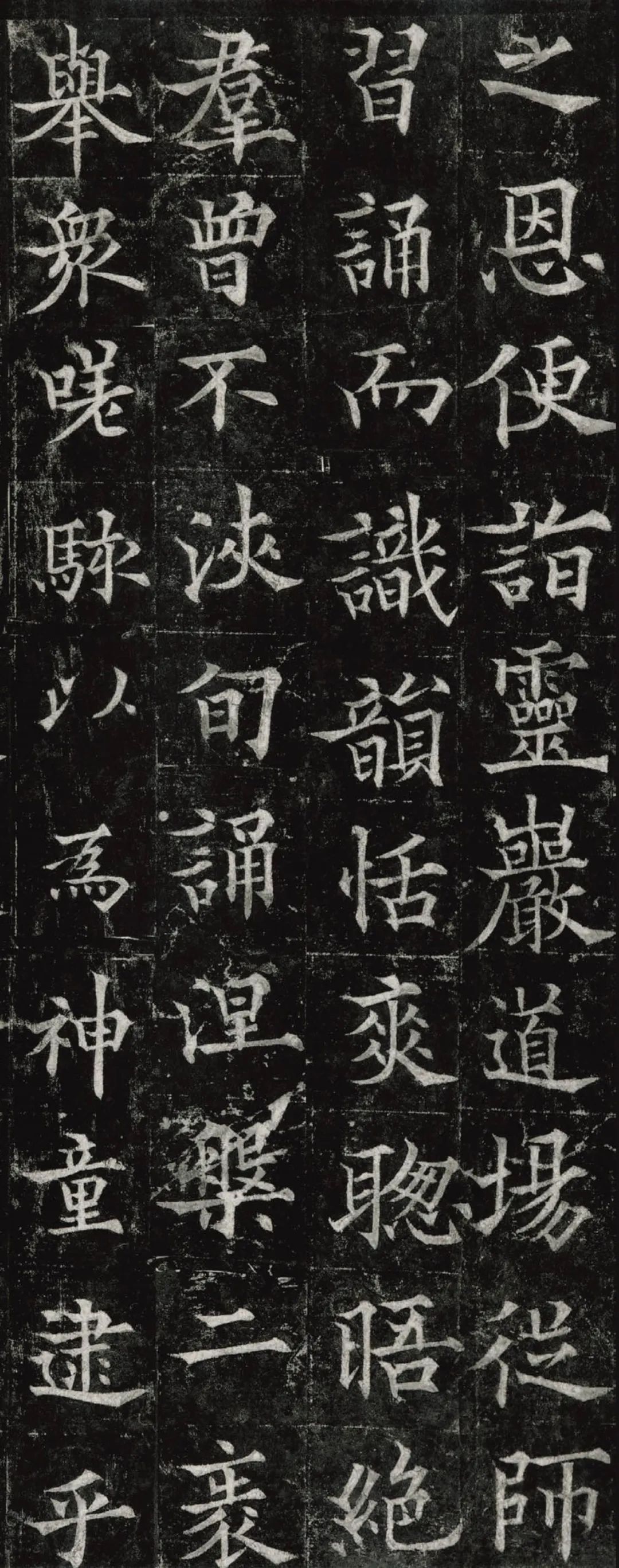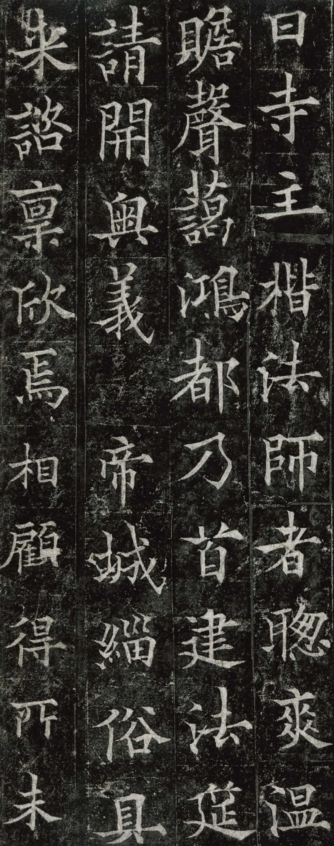 欧阳通,字通师,潭州临湘(今湖南长沙)人,欧阳询第四子。累官中书舍人,殿中监,司礼卿,判纳言事,封渤海县子。后因反对武承嗣为太子被杀。新旧《唐书》有传。欧阳通童年时期,父亲便过世了,母亲徐氏教他学习父书,锐志赞研,刻意摹习,得以继承家法,得询劲锐而险峻过之。成为唐代著名的书法家,与其父欧阳询齐名,有“大小欧阳”之称。欧阳通学书时期,正当初唐书法发生变化的时期,而他以“善学父书”著称。《道因法师碑》,全称《大唐故翻经大德益州多宝寺道因法师碑文并序》。李俨撰文,欧阳通书,华原县常长寿、范素镌刻。唐高宗龙朔三年(663)建。碑高320厘米,宽140厘米。正书,34行,行73字。碑额正书“故大德因法师碑”七字,额字小且横书,比较少见。碑头雕为螭首,碑额处雕饰佛龛,及释迦牟尼、观自在、大势至三佛像,是唐代浮雕极有特色的精品。碑文文字完整,基本无缺损。碑石现存西安碑林。欧阳通书法,出于父,写得更瘦硬,更劲挺,特别是主笔横画在收笔时末锋飞起,富有浓重的隶意,这在此碑帖中多有体现。宋董迪《广川书跋》评云:“通笔力劲险,尽得家风。”朱长文《续书断》以为:“虽得询之劲锐,而意态不及也,然亦可以臻妙品矣。”按,通早孤,未得乃父亲炙,书法由母徐氏指导,蒐讨父迹,力学不倦,纵有异同,或谓不及,亦自在情理之中。明王世贞《弁州山人稿》评其书 “《道因碑》如病维摩,高格贫士,虽不饶乐,而眉宇间有风霜之气,可重也。”杨守敬《平碑记》评价:碑森焉若武库矛戟”,正是指字里行间所流露出的刚直不阿的气概,可谓书如其人。汪珂玉《珊瑚网》“瘦怯于父而险峻过之”。清何绍基称此碑“险劲横铁,往生育突过乃翁”。杨士奇《东里续集》“矩蠖森严,意态飘逸,但少含蓄之趣耳”,故以“风霜之气”为喻。叶昌炽《语石》评云:“《果道因法师碑》戈戟森森,锋颖四出,六朝淳古之气,浇漓尽矣。盖能得之《皇甫碑》之险峻,而无《化度》之淳蓄,非善学率更者也。余谓小欧,但传其父分隶法。”