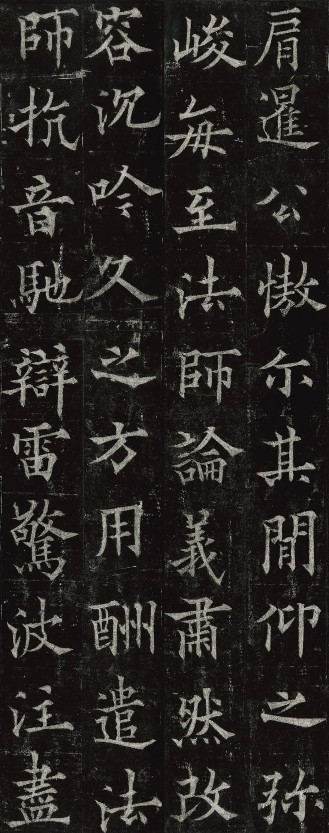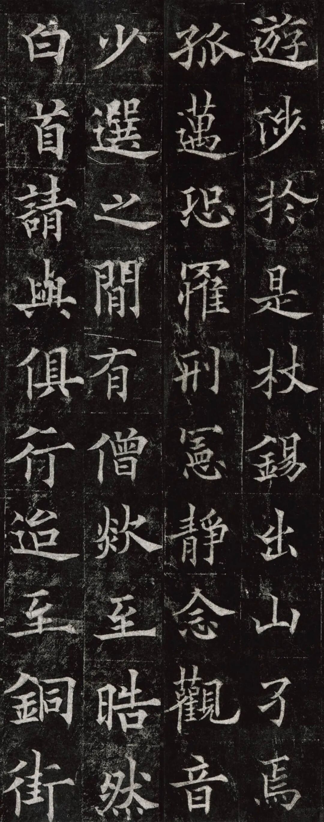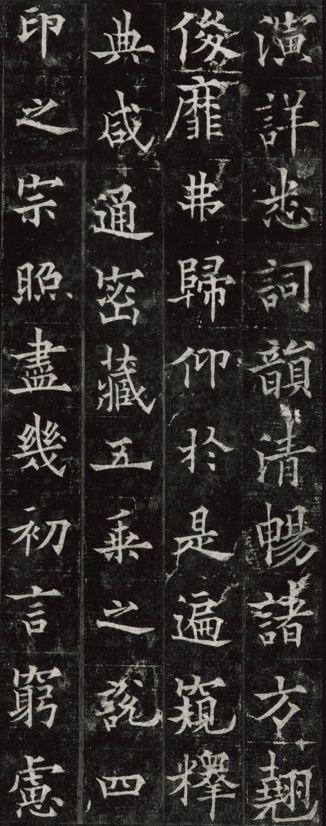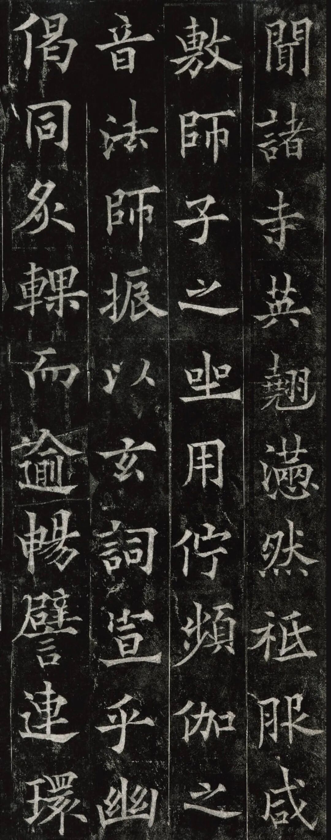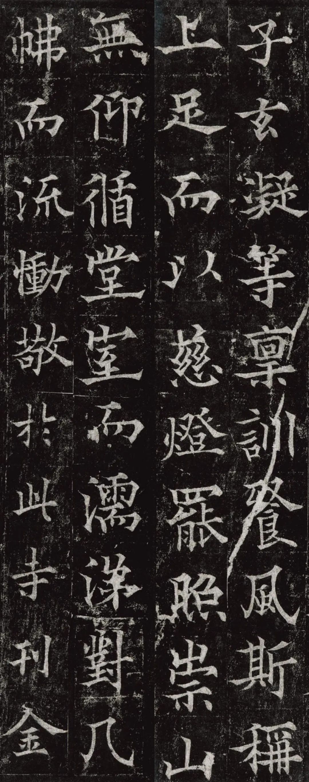 欧阳通,字通师,潭州临湘(今湖南长沙)人,欧阳询第四子。累官中书舍人,殿中监,司礼卿,判纳言事,封渤海县子。后因反对武承嗣为太子被杀。新旧《唐书》有传。欧阳通童年时期,父亲便过世了,母亲徐氏教他学习父书,锐志赞研,刻意摹习,得以继承家法,得询劲锐而险峻过之。成为唐代著名的书法家,与其父欧阳询齐名,有“大小欧阳”之称。欧阳通学书时期,正当初唐书法发生变化的时期,而他以“善学父书”著称。《道因法师碑》,全称《大唐故翻经大德益州多宝寺道因法师碑文并序》。李俨撰文,欧阳通书,华原县常长寿、范素镌刻。唐高宗龙朔三年(663)建。碑高320厘米,宽140厘米。正书,34行,行73字。碑额正书“故大德因法师碑”七字,额字小且横书,比较少见。碑头雕为螭首,碑额处雕饰佛龛,及释迦牟尼、观自在、大势至三佛像,是唐代浮雕极有特色的精品。碑文文字完整,基本无缺损。碑石现存西安碑林。欧阳通书法,出于父,写得更瘦硬,更劲挺,特别是主笔横画在收笔时末锋飞起,富有浓重的隶意,这在此碑帖中多有体现。宋董迪《广川书跋》评云:“通笔力劲险,尽得家风。”朱长文《续书断》以为:“虽得询之劲锐,而意态不及也,然亦可以臻妙品矣。”按,通早孤,未得乃父亲炙,书法由母徐氏指导,蒐讨父迹,力学不倦,纵有异同,或谓不及,亦自在情理之中。明王世贞《弁州山人稿》评其书 “《道因碑》如病维摩,高格贫士,虽不饶乐,而眉宇间有风霜之气,可重也。”杨守敬《平碑记》评价:碑森焉若武库矛戟”,正是指字里行间所流露出的刚直不阿的气概,可谓书如其人。汪珂玉《珊瑚网》“瘦怯于父而险峻过之”。清何绍基称此碑“险劲横铁,往生育突过乃翁”。杨士奇《东里续集》“矩蠖森严,意态飘逸,但少含蓄之趣耳”,故以“风霜之气”为喻。叶昌炽《语石》评云:“《果道因法师碑》戈戟森森,锋颖四出,六朝淳古之气,浇漓尽矣。盖能得之《皇甫碑》之险峻,而无《化度》之淳蓄,非善学率更者也。余谓小欧,但传其父分隶法。”