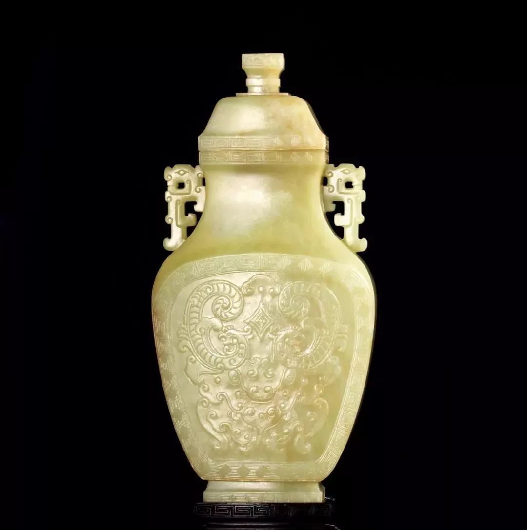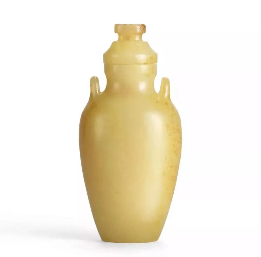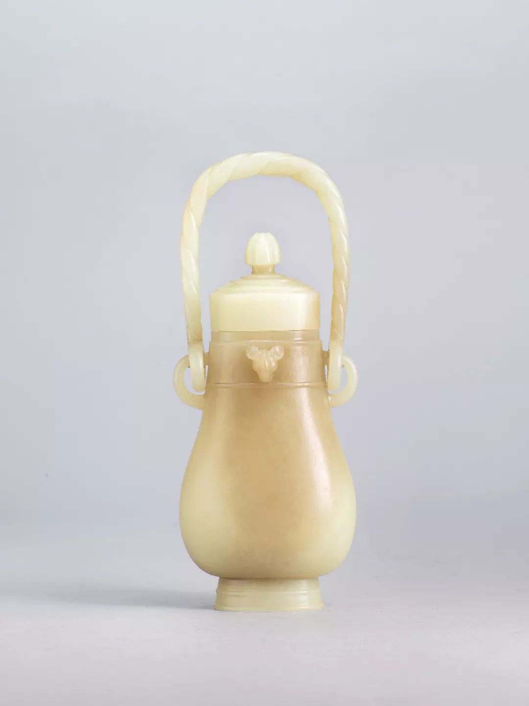 清乾隆 御制朱彩镌黄玉雕提梁禾亭卣 「乾隆年製」篆书刻款