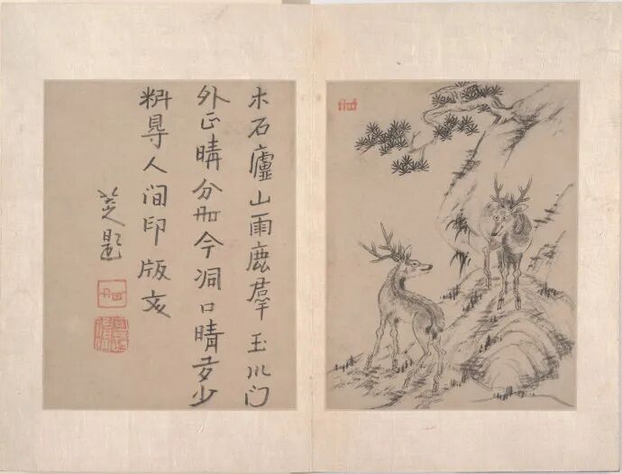 八大最善于“残景构图”。大身为明室后裔,眼看国破家亡,其内心比南宋四家更悲痛,更苦闷,所以在其山水画中常常采取 “一角”、“半边” 的残景式构图。即截取物象的一部分,进行局部特写。花鸟画中常常善于选取半截树干、几条树枝,半边石头来经营画面。这种方法也常常运用于山水画中,如安徽博物馆所藏《山水册》之一,画面截取山石一角,几棵杂树悬空倒立,画面留下大片空白,构图奇险,意境空旷。残景式构图,适应了八大精神思想的需要,残山剩水,地老天荒的意境被表现的淋漓尽致。而其笔墨淡雅,萧疏空灵,显示着文人画特有的清淡魅力。