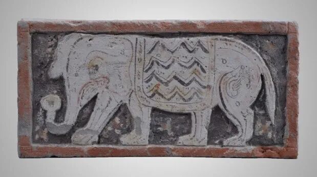 西晋 宝象雕刻彩绘砖 敦煌博物馆藏