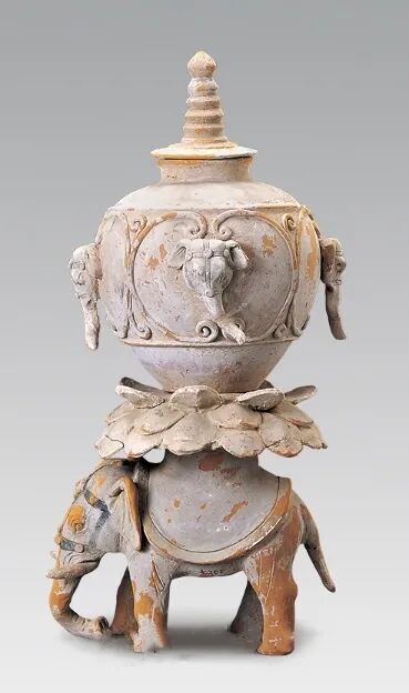 唐 彩绘象座塔式罐 陕西历史博物馆藏