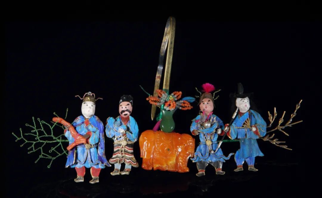 “太平有象”的制式在清朝尤为流行,渗透到了清朝人生活的方方面面。除了钟表、乐器、摆件,在衣物、头饰、文具上也随处可见其身影。