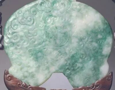 这件太平有象磬用翠玉制成,一面雕象,一面雕云气纹并凸雕篆书“太平有象”四字。