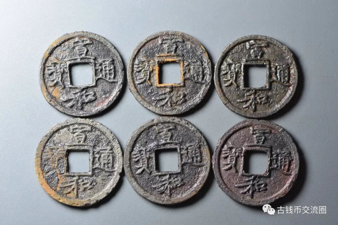 除了在书法、绘画方面的天资,宋徽宗也是我国历史上有名的铸币能手,在位二十余年年间,铸造发行了建国、崇宁、大观、重和、宣和六种年号钱,以及“圣宋”一种国号钱。