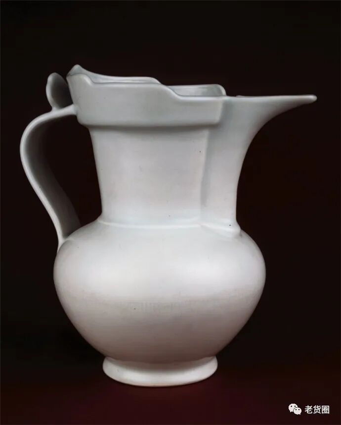 是明永乐时期景德镇窑的制品。壶身通体施白釉,白中泛青,釉面晶莹肥美,以单色釉突出器物造型的美感。壶口制作僧帽形状,故名僧帽壶。帽沿就是口流,手柄边制一绳系,以便倒水时系壶盖。壶身没有任何彩绘装饰,壶体制作精致。