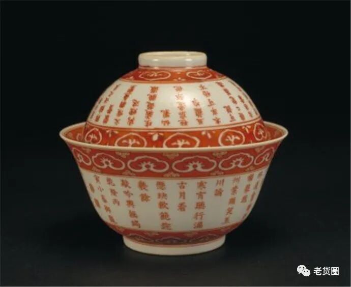 清乾隆 油红御制诗盖碗